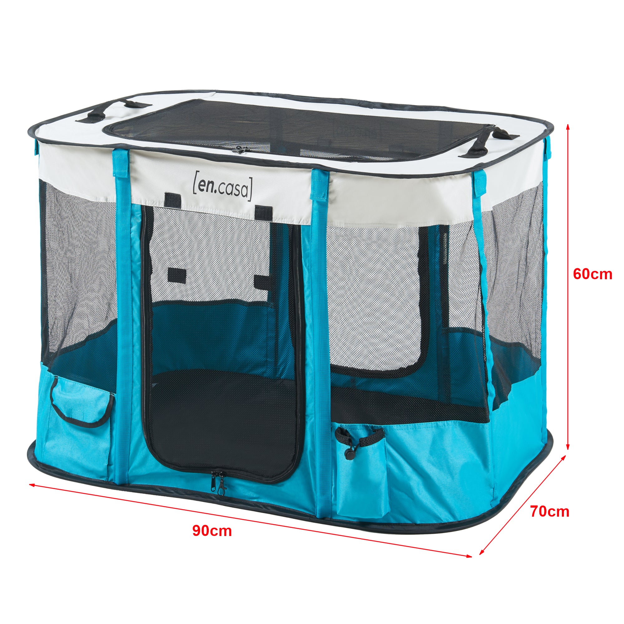 Dotato di finestre in rete, un tetto in rete e una porta in rete arrotolabile, questo recinto garantisce una ventilazione ottimale e consente al proprietario di tenere sempre sotto controllo l’animale domestico. Sia la porta che il tetto si aprono e chiudono comodamente con una cerniera lampo.