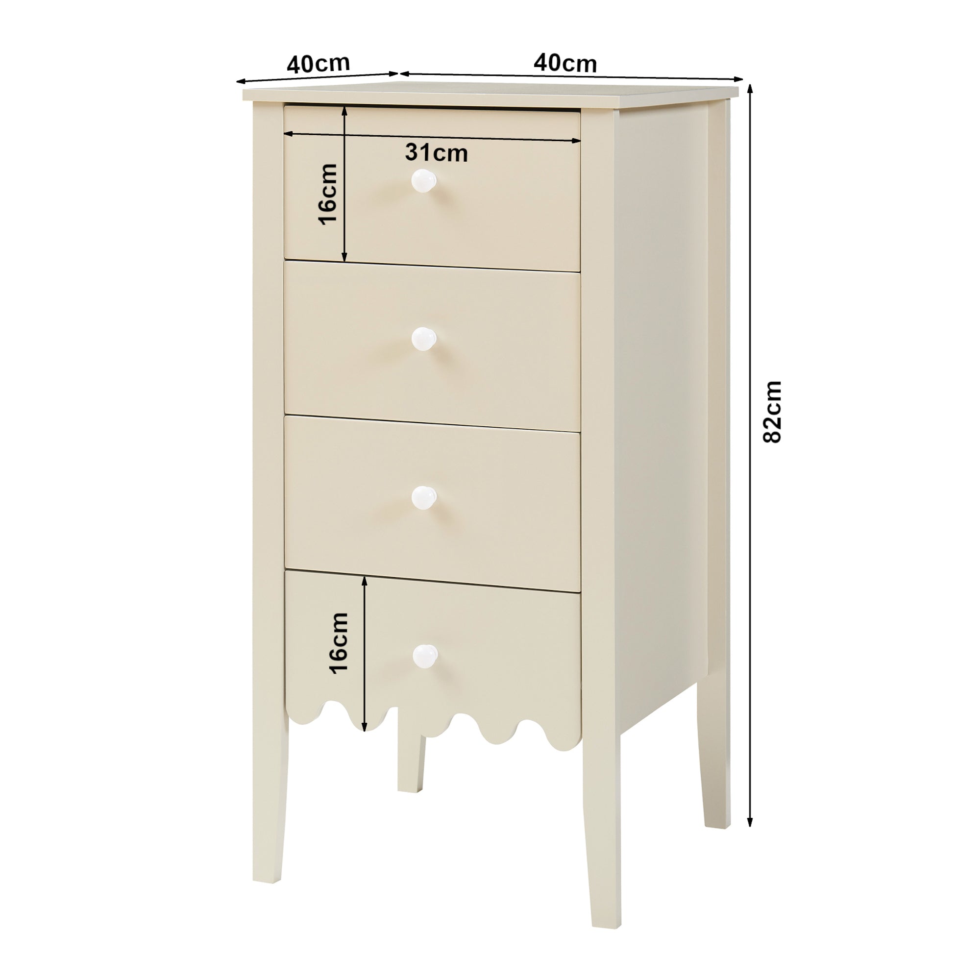 Dotato di quattro cassetti, offre ampio spazio per riporre ordinatamente e a portata di mano i più svariati oggetti. I cassetti sono spaziosi e permettono una conservazione organizzata di abbigliamento, accessori e altri articoli per la casa.