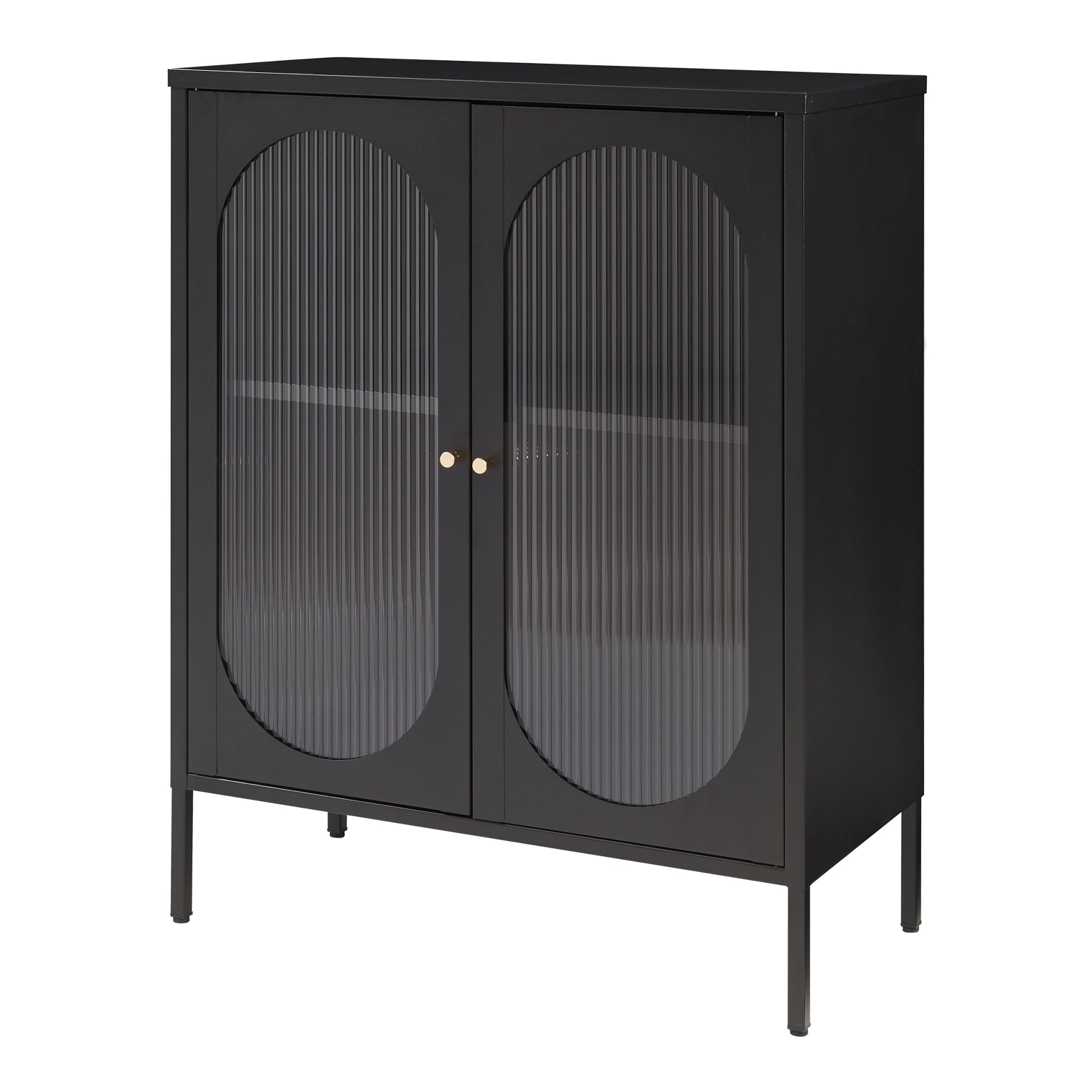 - Due ante decorative in vetro rigato con maniglie rotonde in metallo