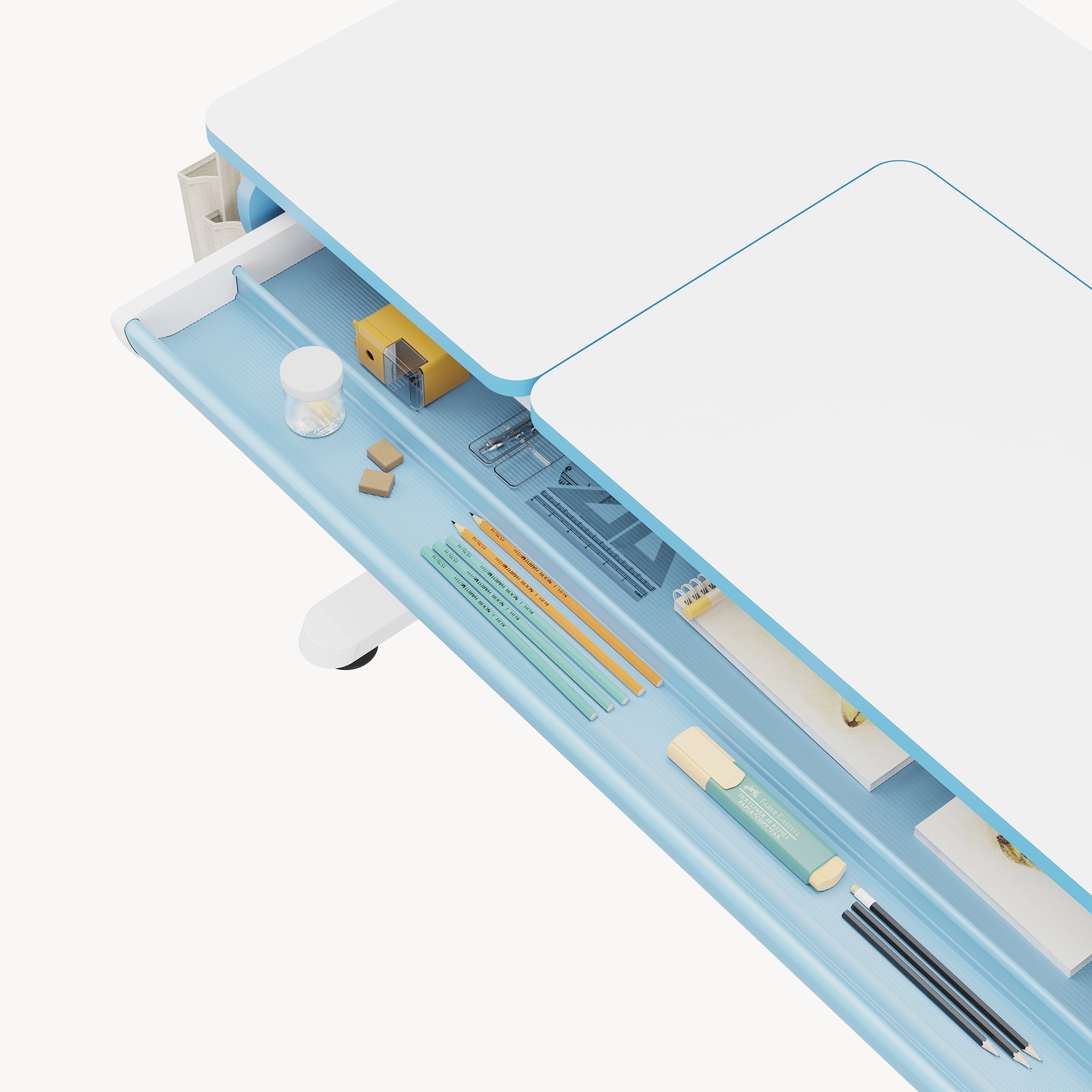Lo scrittoio regolabile in altezza si adatta facilmente alle esigenze individuali e alle fasi di crescita del vostro bambino. Con il suo design accattivante e la sua versatilità funzionale, è la scelta ideale per ogni cameretta.