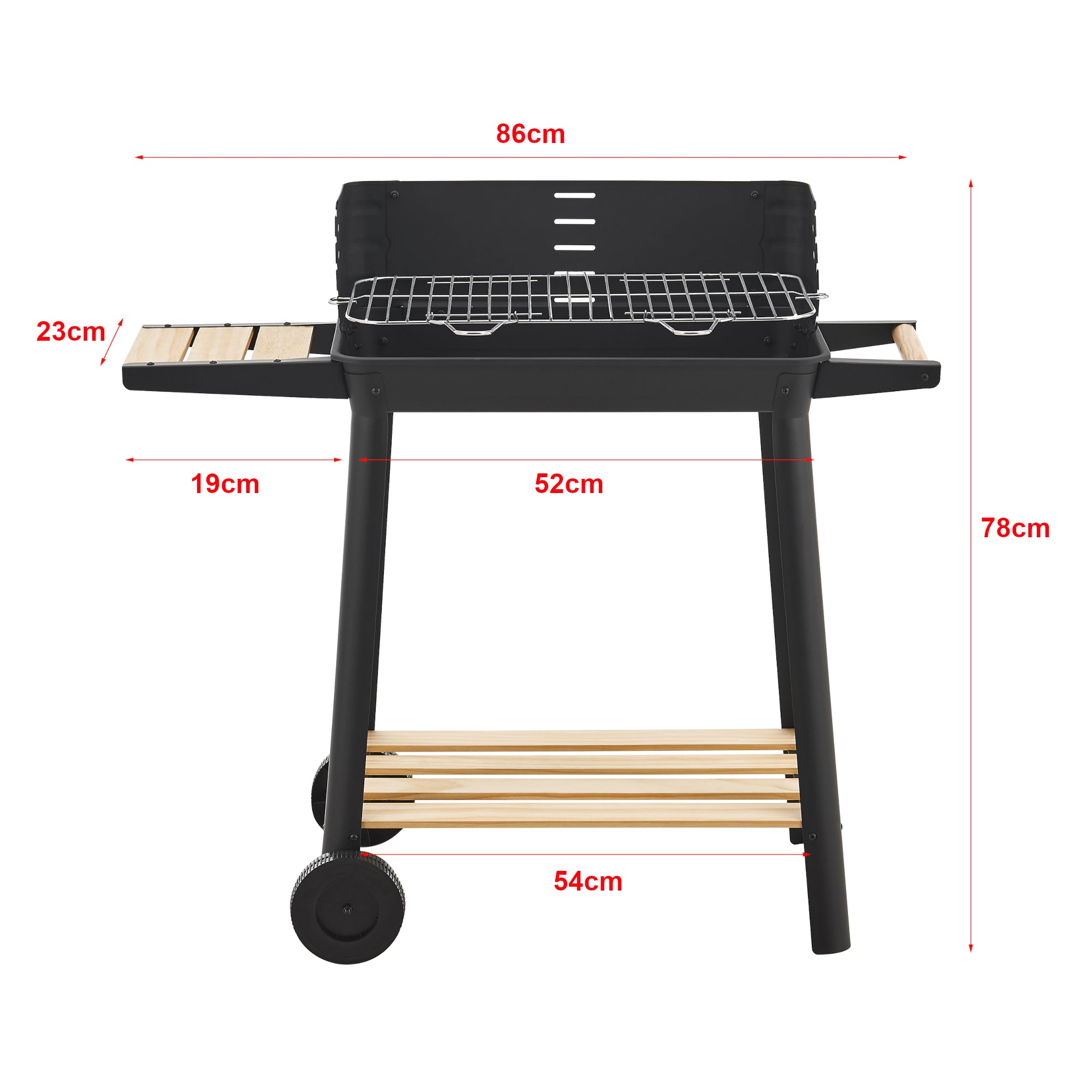 Il nostro barbecue a carbone unisce un design classico a caratteristiche pratiche, come un'ampia superficie di cottura e ripiani integrati per gli accessori da barbecue. Grazie alle sue grandi e stabili ruote, il barbecue si sposta facilmente da un luogo all'altro, perfetto per le vostre feste in giardino o riunioni di famiglia.