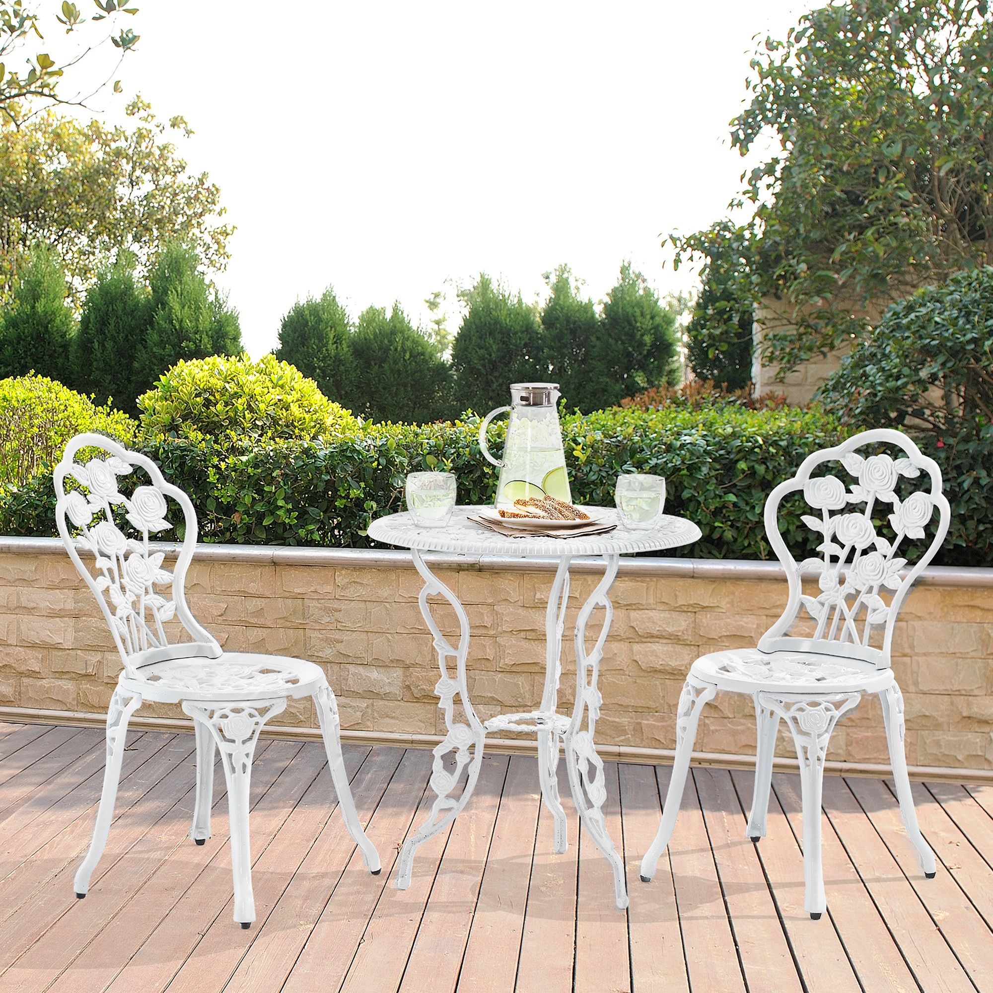 Il set bistrot in ghisa non è solo un elemento decorativo, ma anche estremamente stabile e resistente alle intemperie. La superficie bianca dalla finitura satinata conferisce al set un’eleganza senza tempo che si integra armoniosamente in ogni ambiente. Che sia per una cena romantica all’aperto o come comodo angolo per la lettura, questo set vi offre la combinazione perfetta di stile e comfort. Regalate a voi e ai vostri ospiti momenti indimenticabili all’aperto con questi mobili da giardino in ghisa!
