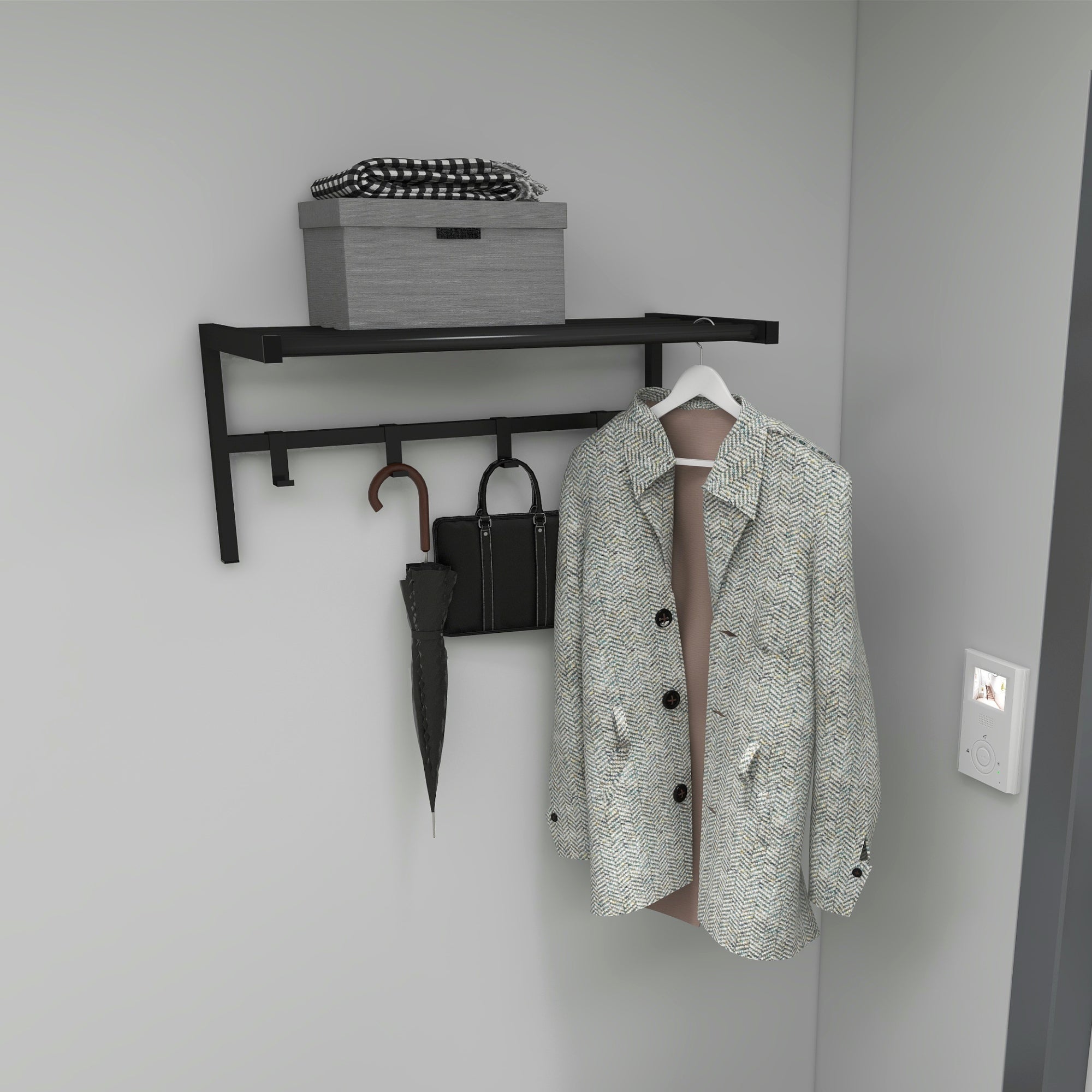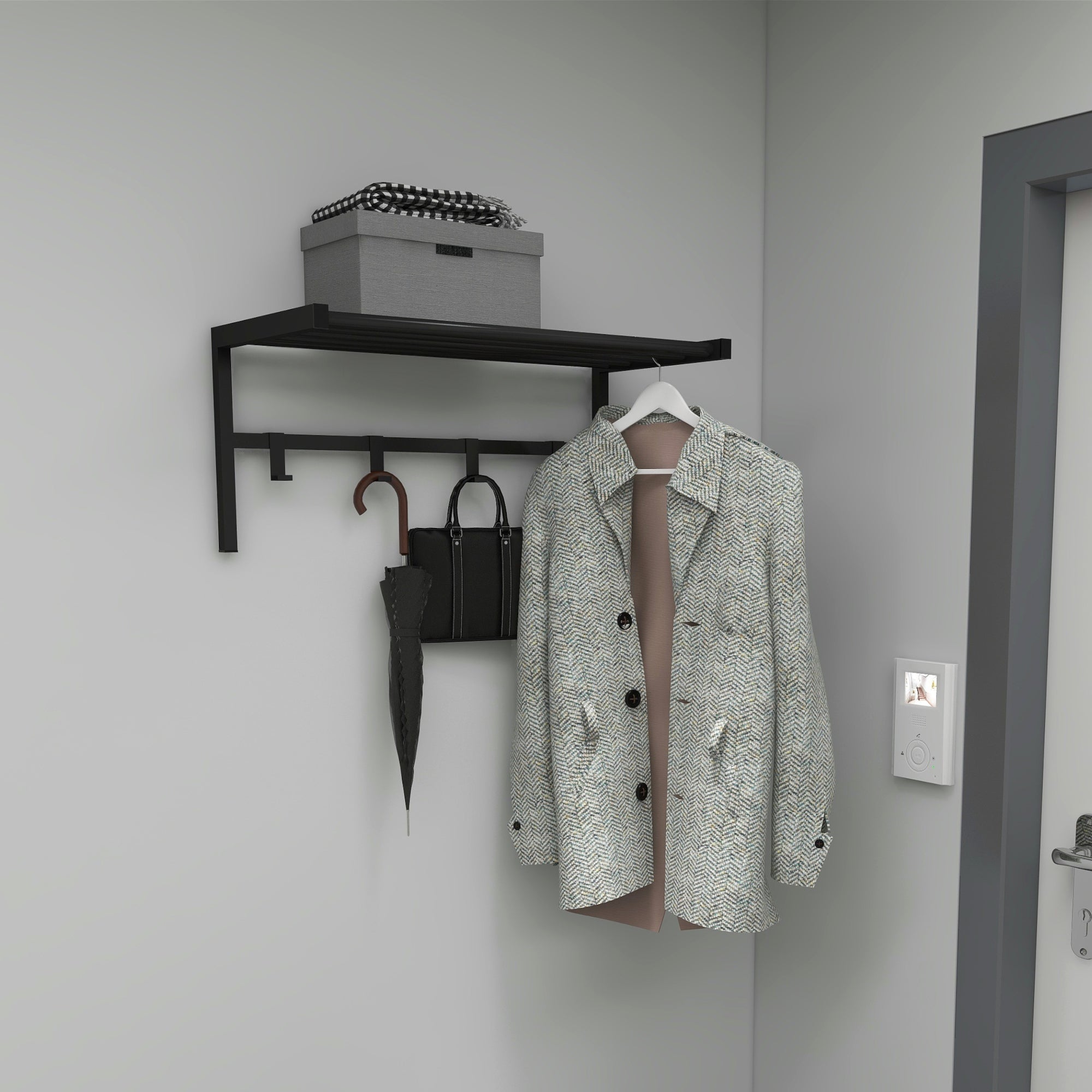 1 x appendiabiti da parete con ripiano incl. materiale di montaggio