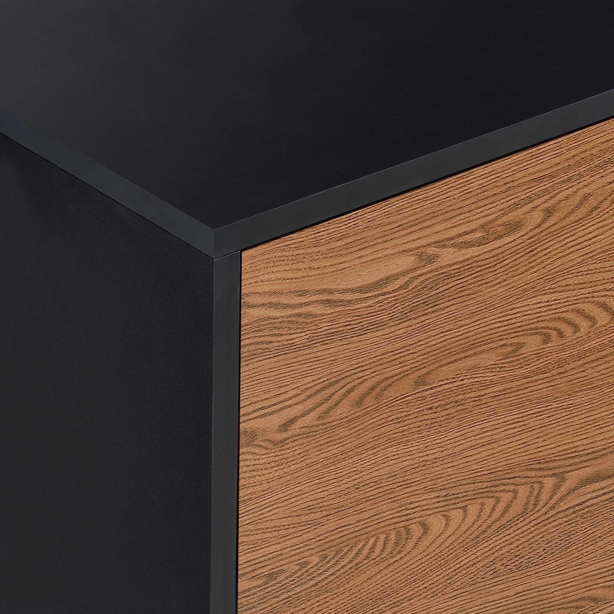All’interno il lowboard offre ampio spazio di archiviazione per libri, stoviglie o oggetti personali. Un ripiano divisorio organizza lo spazio interno in modo chiaro e consente un utilizzo efficiente dello spazio disponibile.
