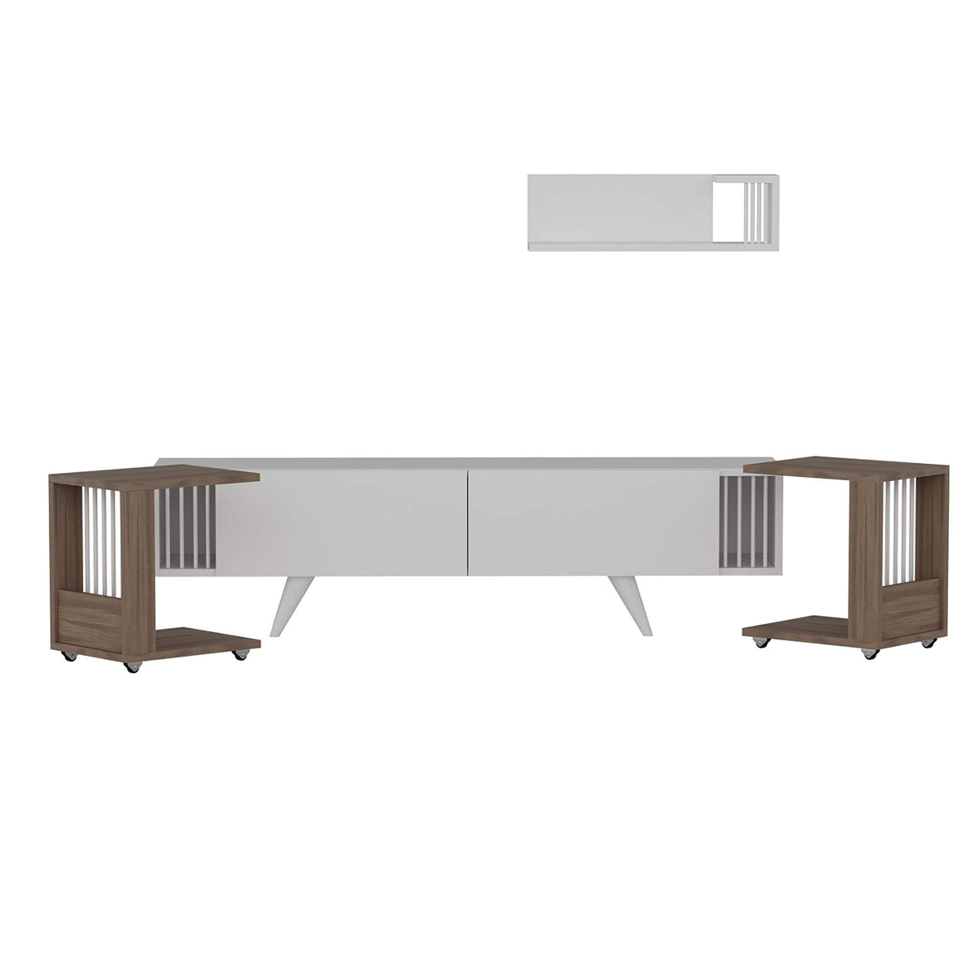 Tavolino TV con scaffale e 2 tavolini laterali