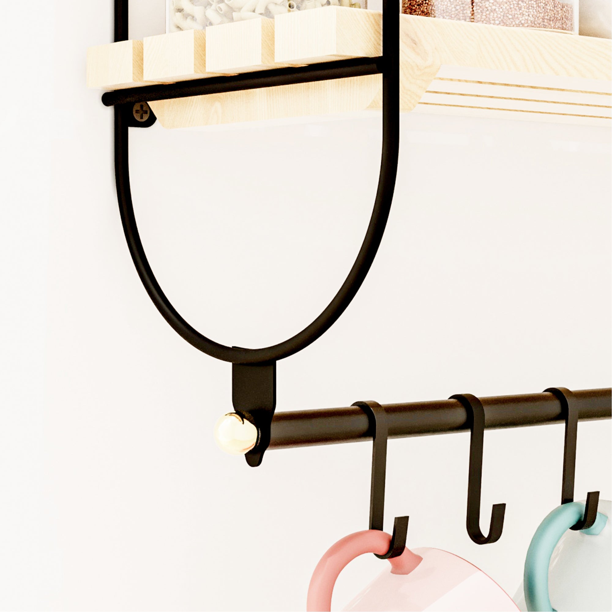 Particolarmente utile in cucina, la mensola non solo funge da spazio per spezie, barattoli di caffè e utensili da cucina, ma porta anche ordine nella moltitudine di accessori da cucina.