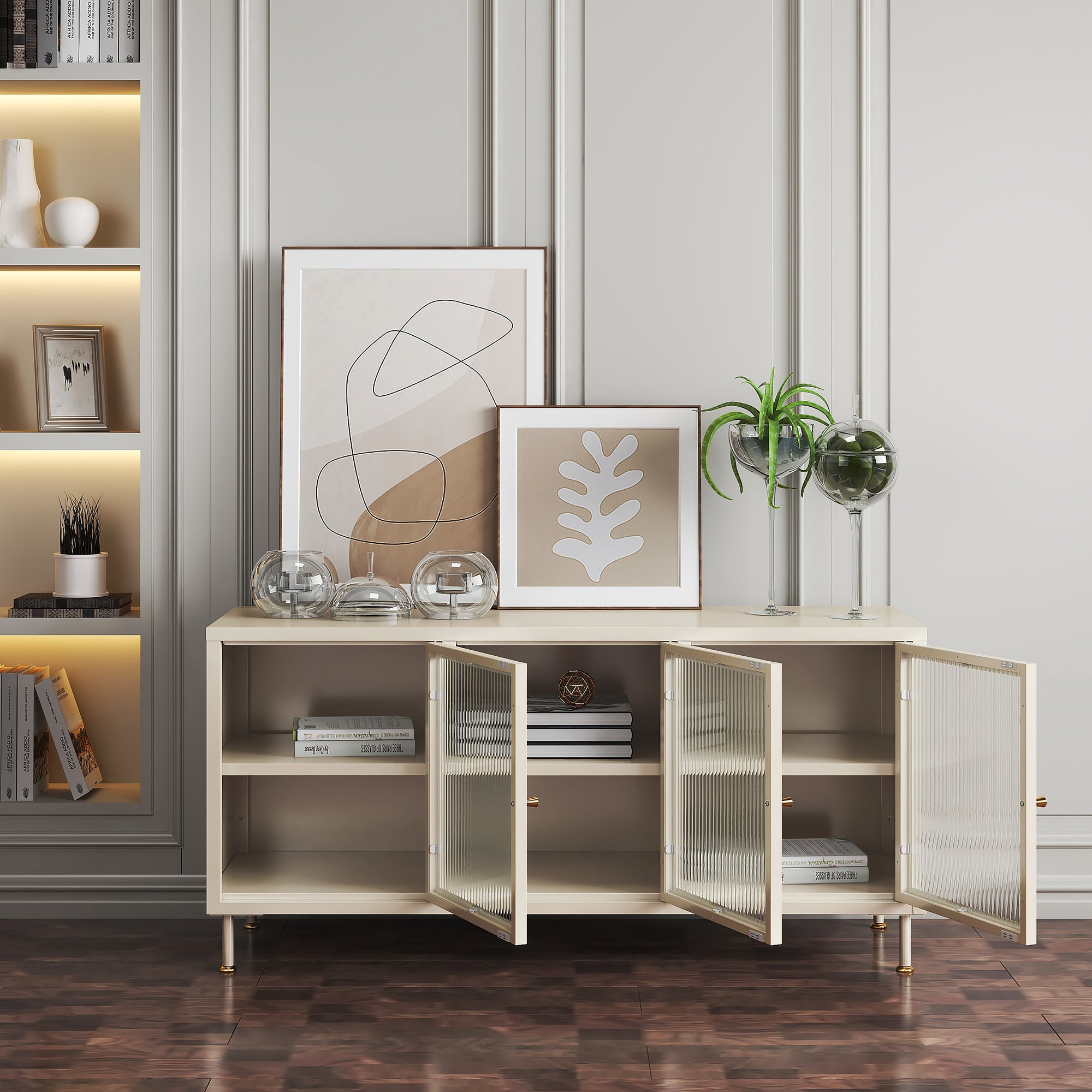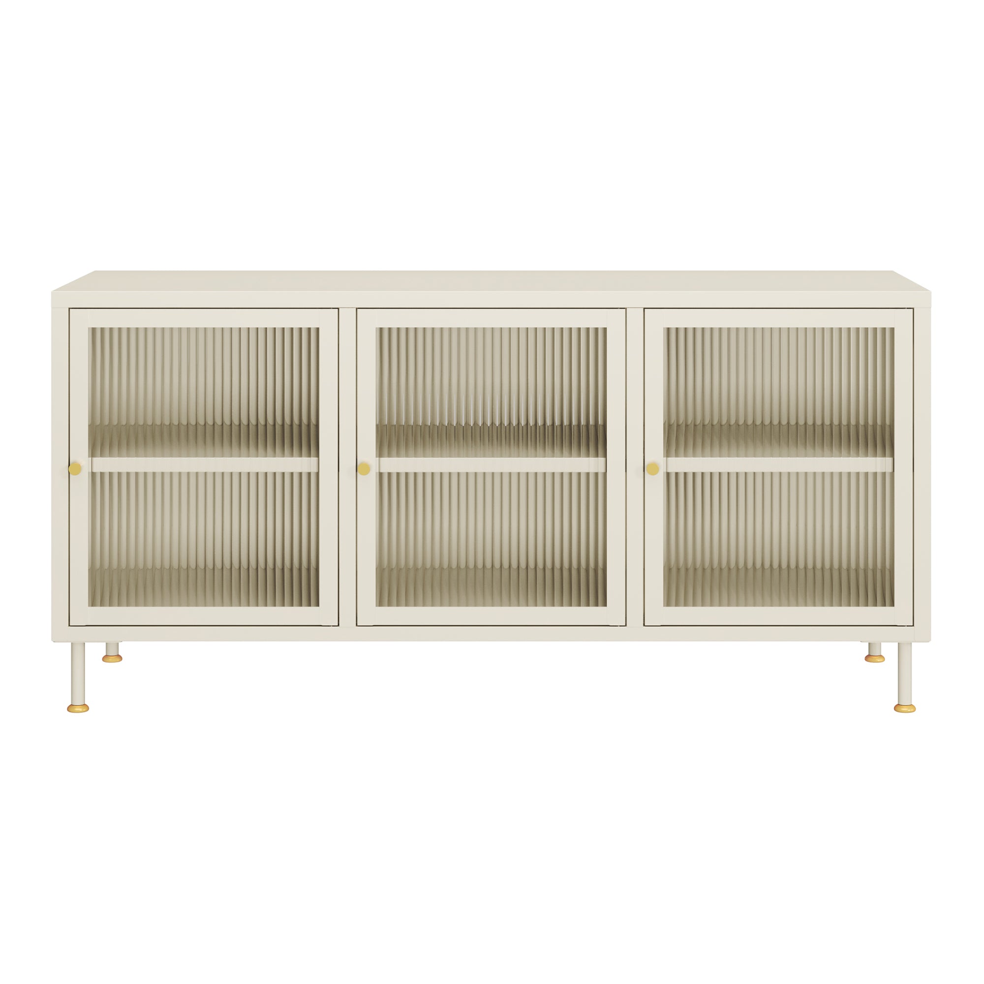 La spaziosa superficie del lowboard offre ampio spazio per il vostro televisore. Inoltre, il mobile ben progettato dispone di tre ante con chiusura magnetica, che si aprono facilmente.