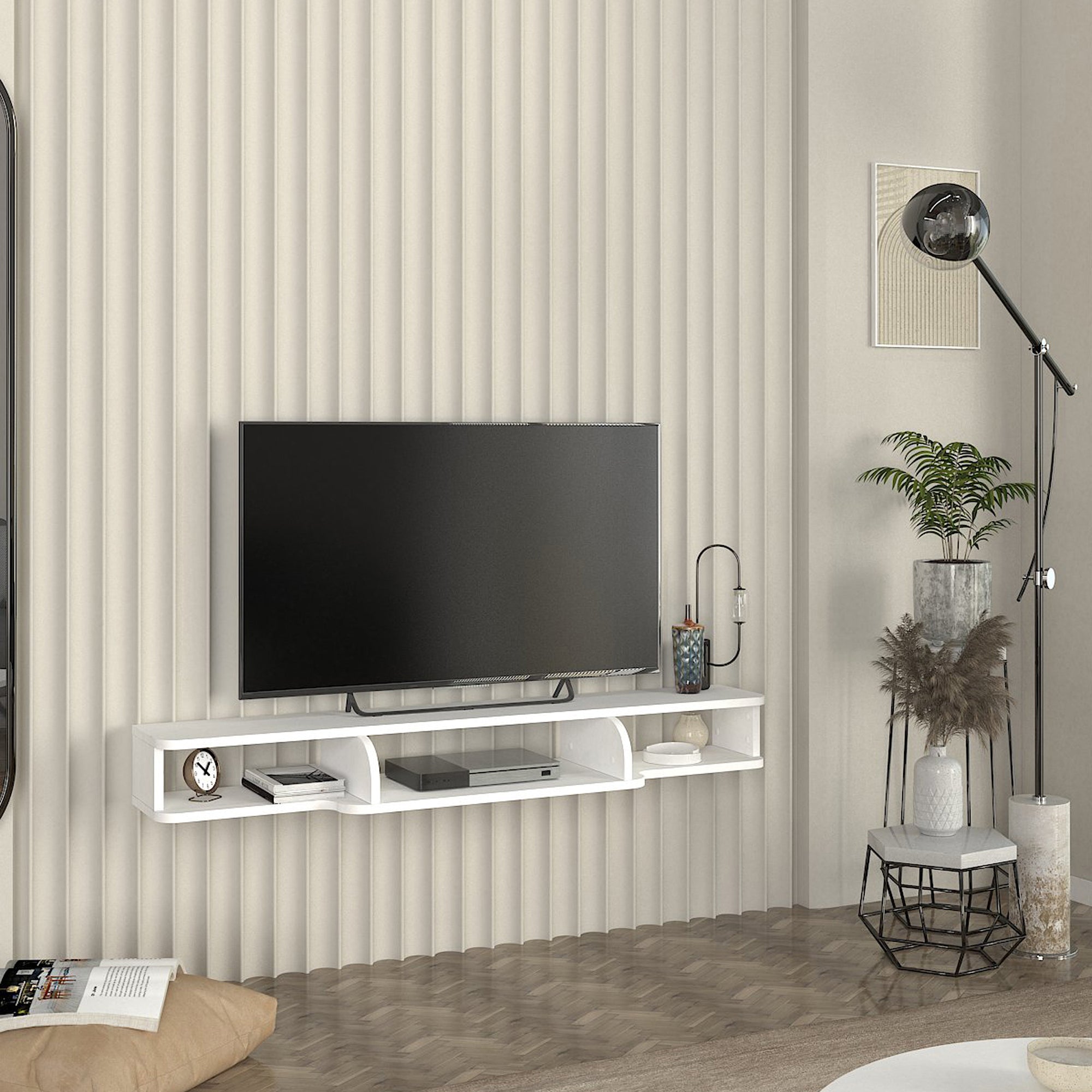 La moderna mensola TV è facile e veloce da montare e da fissare a parete. Dispone di diverse pratiche superfici di appoggio ed è un elegante complemento per il vostro soggiorno o angolo intrattenimento.