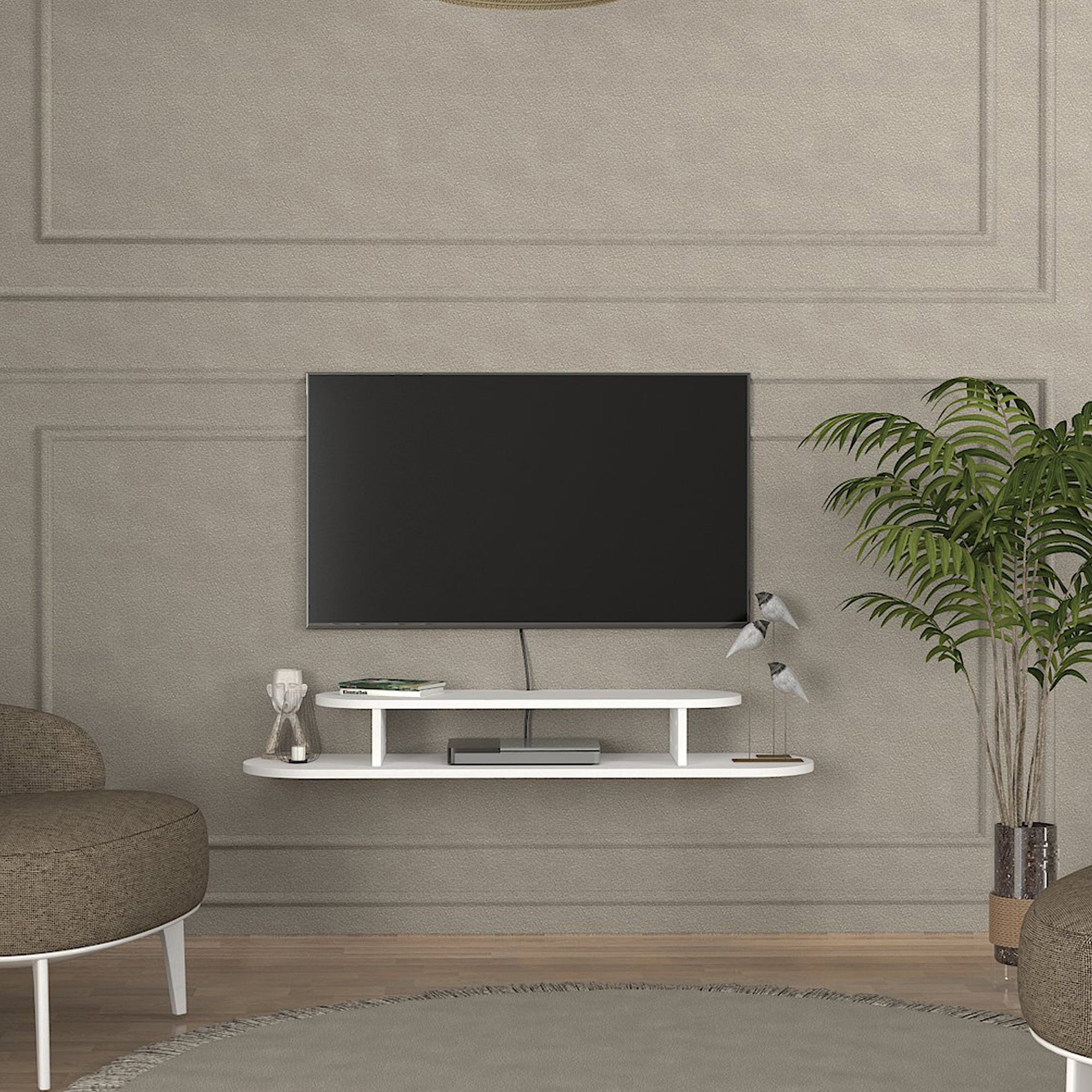 La moderna mensola TV è facile e veloce da montare e da fissare a parete. Dispone di diverse pratiche superfici di appoggio ed è un elegante complemento per il vostro soggiorno o angolo intrattenimento.