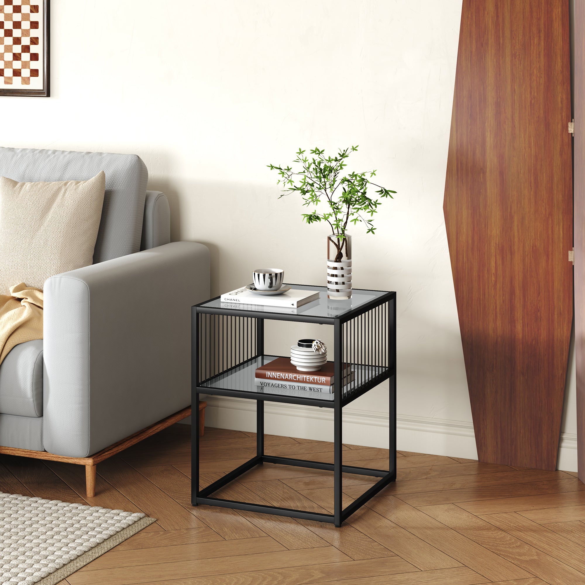 La versatilità del tavolino laterale vi permette di utilizzarlo in modo flessibile in diverse stanze. Nel soggiorno può servire come pratico piano d’appoggio accanto al divano, mentre in camera da letto offre spazio come comodino per la vostra lampada da lettura e il vostro libro. Inoltre, può creare un’accoglienza invitante nell’ingresso.