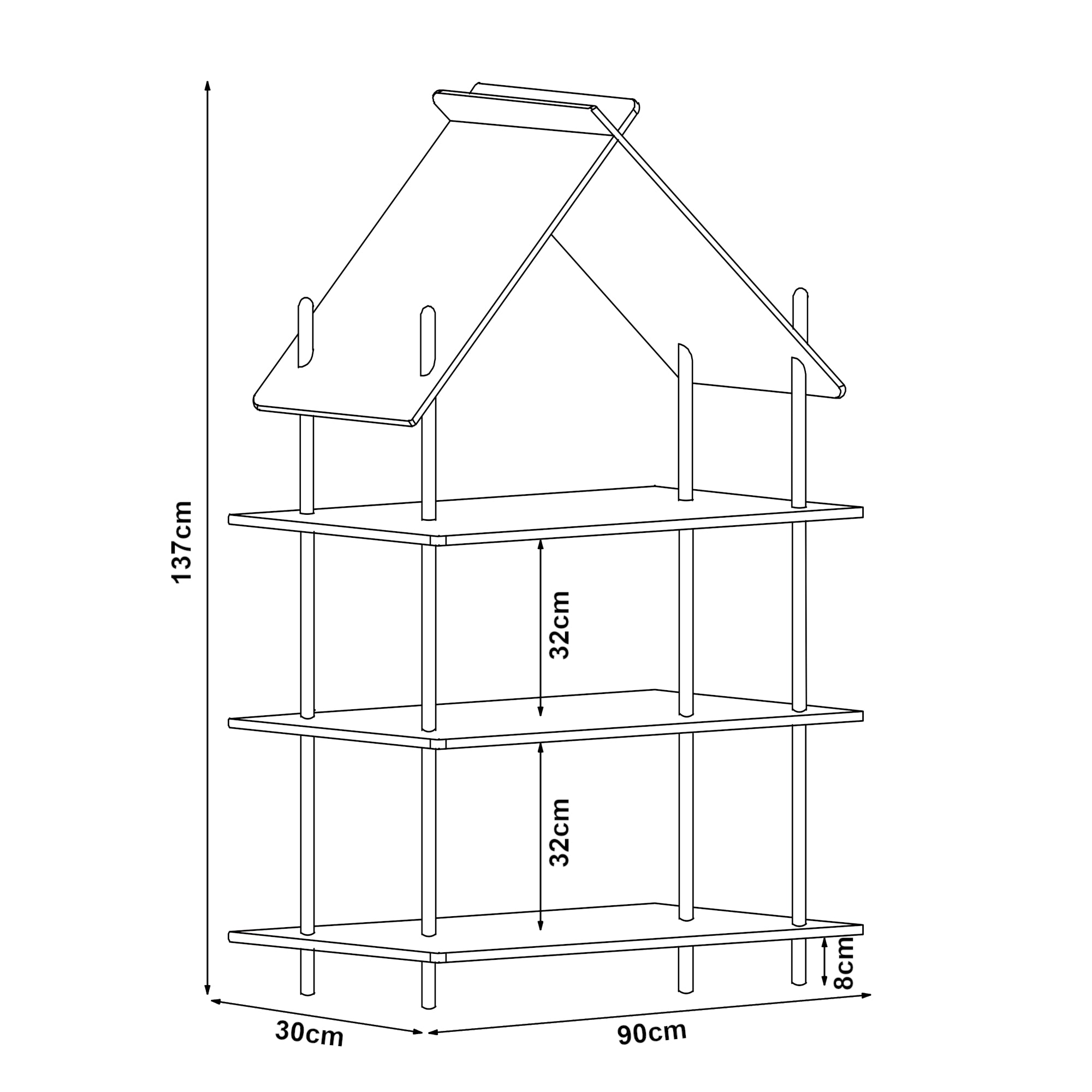 - Distanza tra i ripiani: 32 cm ciascuno