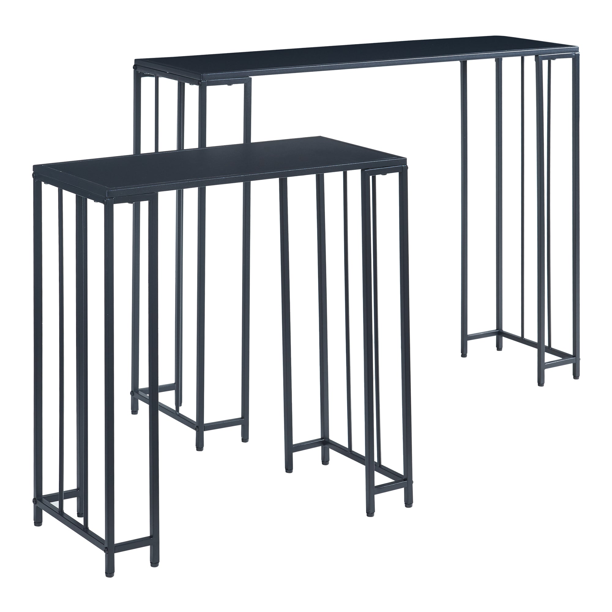 Questo set decorativo e pratico è composto da due consolle di dimensioni diverse. Entrambe dispongono di un ampio piano d’appoggio e sono un complemento perfetto per ogni casa.