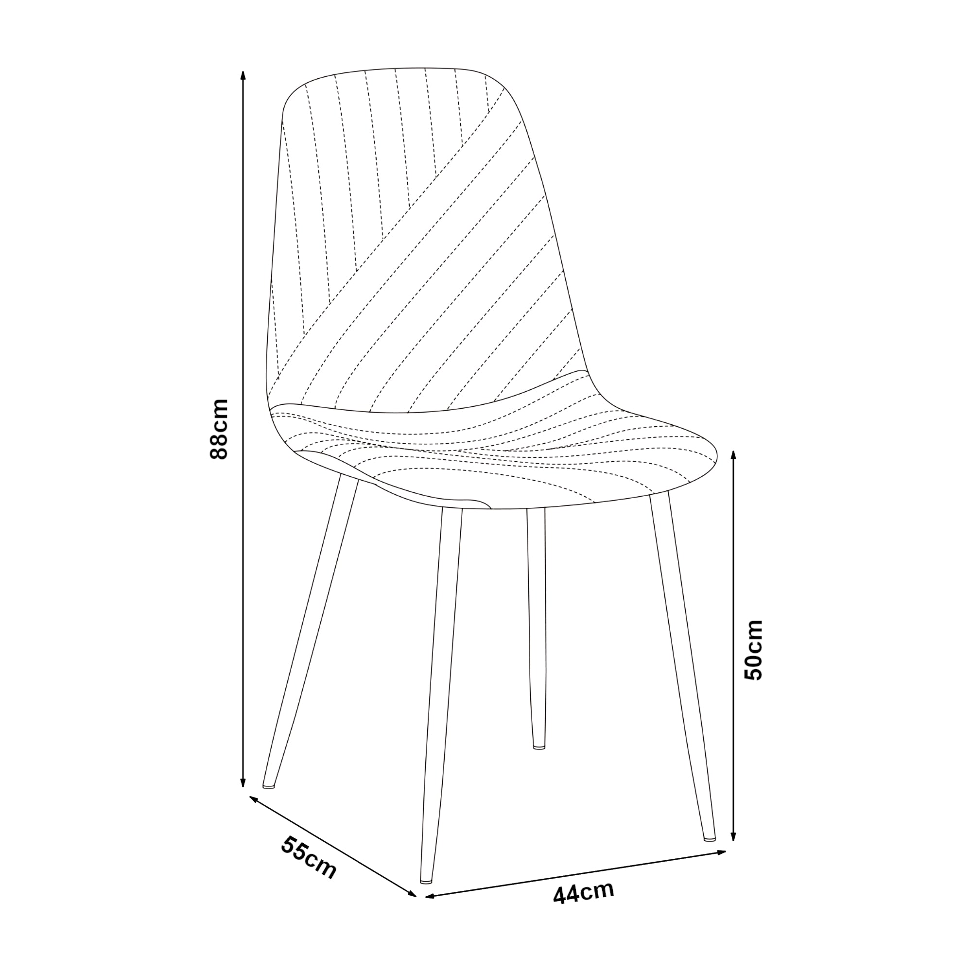- Sedia (AxLxP): ciascuna 88 x 44 x 55 cm