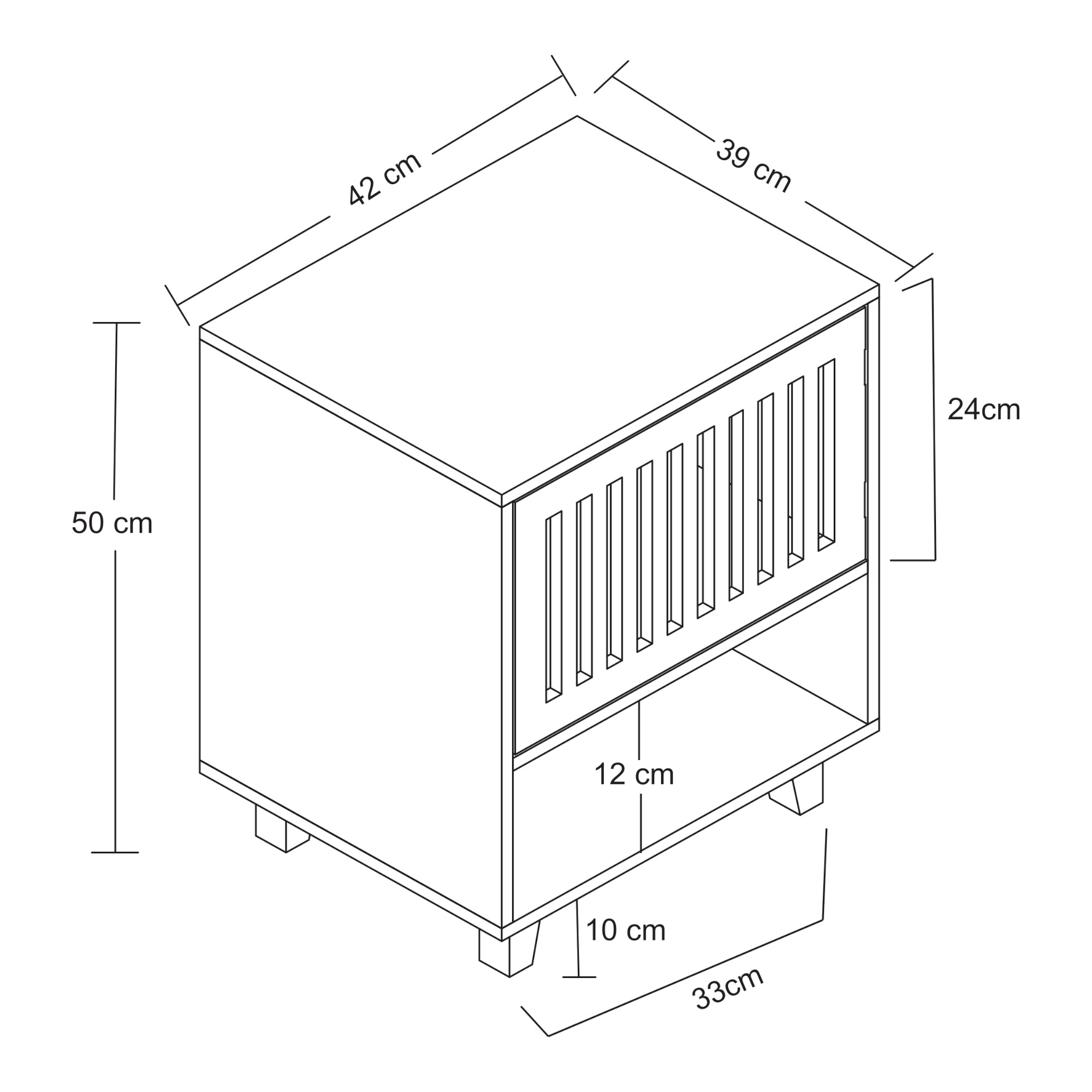 I due scomparti offrono una versatilità che si adatta alle diverse esigenze di archiviazione. Lo scomparto, chiuso da un'anta con doghe parallele, consente una visione sottile degli oggetti al suo interno. Questa trasparenza leggera permette di individuare facilmente gli oggetti senza dover aprire l'anta. Lo scomparto aperto aggiunge un elemento di accessibilità, ideale per gli articoli che vengono utilizzati frequentemente o per quelli che si desidera avere a portata di mano.