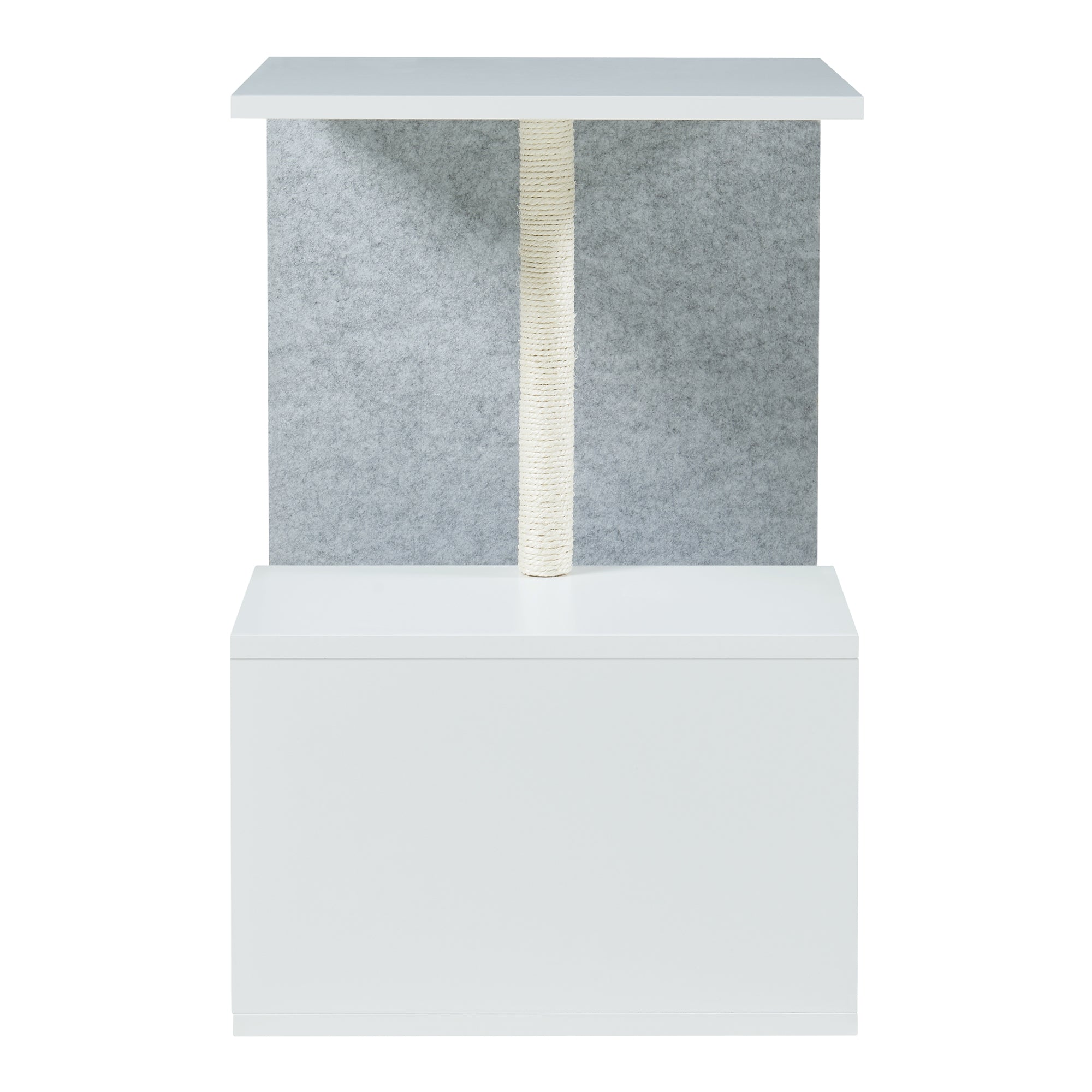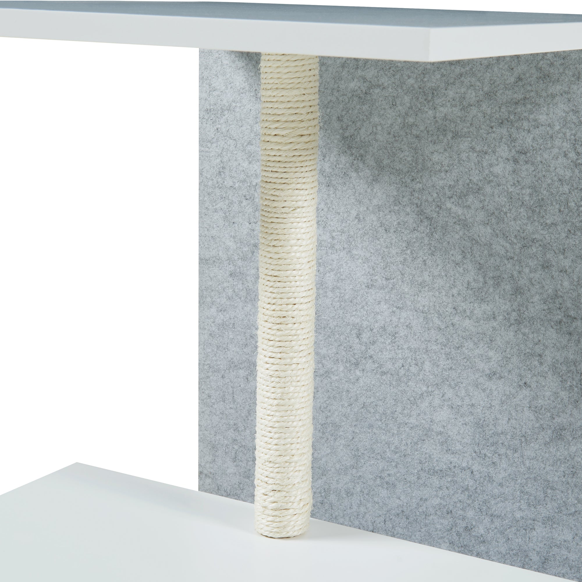 Il tavolino è un mobile versatile che si integra perfettamente in ogni ambiente domestico. Particolarmente pratico per gli amanti dei gatti sono la colonna graffiatrice integrata e le superfici graffianti rivestite in feltro, che proteggono i vostri mobili.