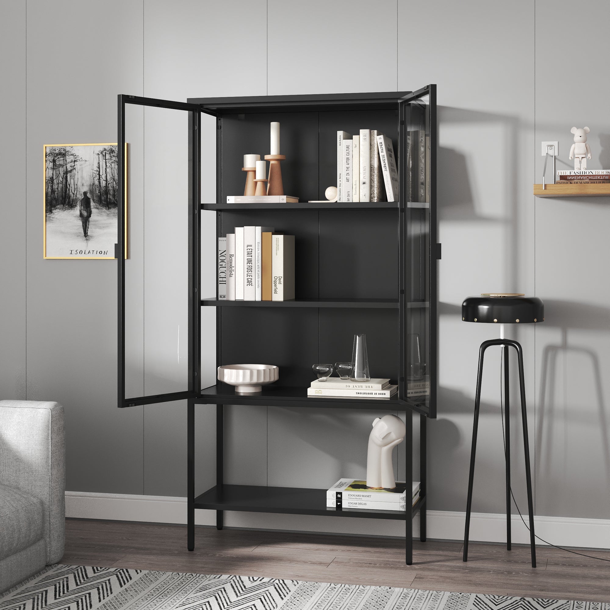 La moderna vetrina unisce un design elegante a uno spazio pratico per riporre, ed è l’integrazione ideale per il soggiorno, l’ufficio o la zona pranzo. Con due ante in vetro e tre ampi ripiani interni, mette in mostra i tuoi oggetti preferiti in modo decorativo.