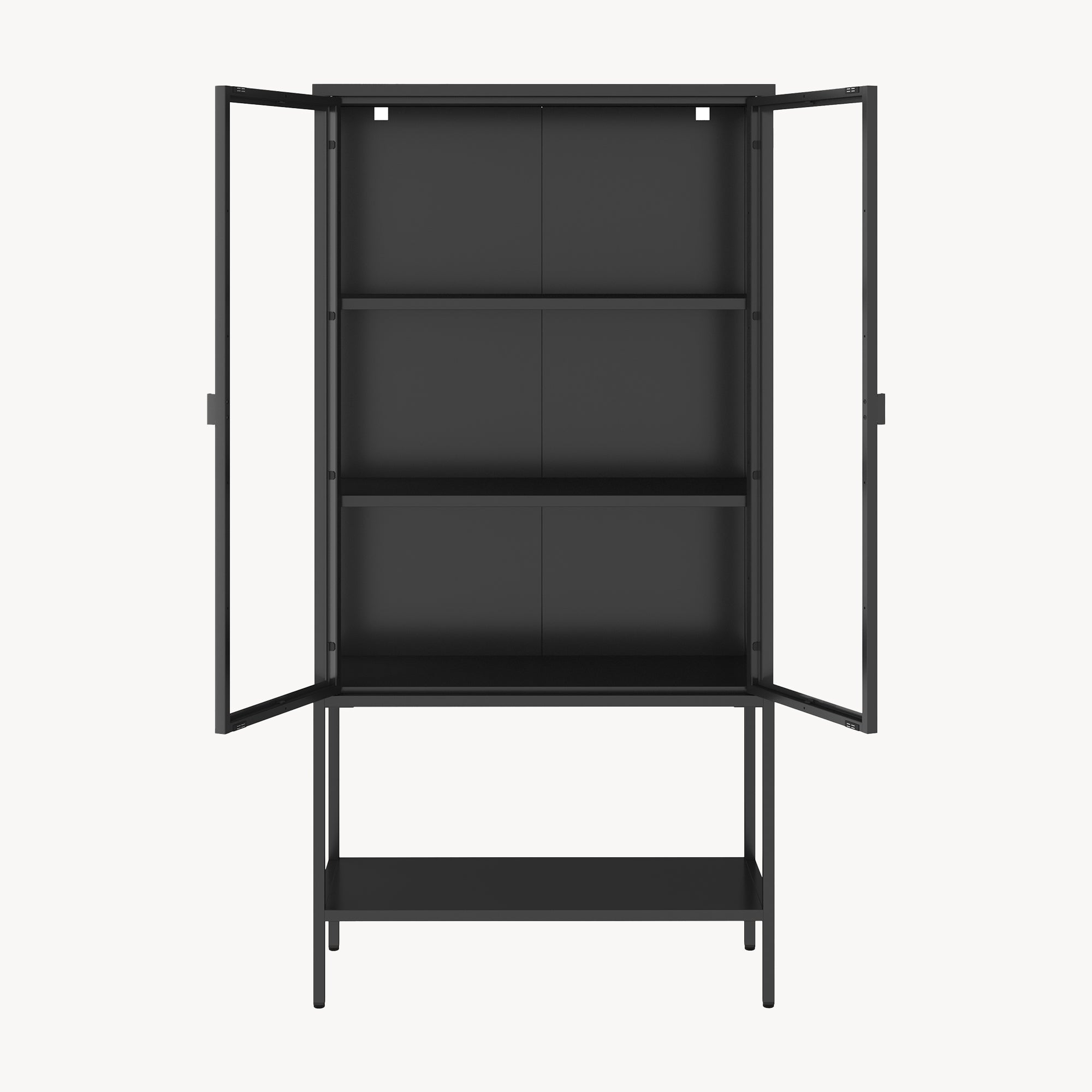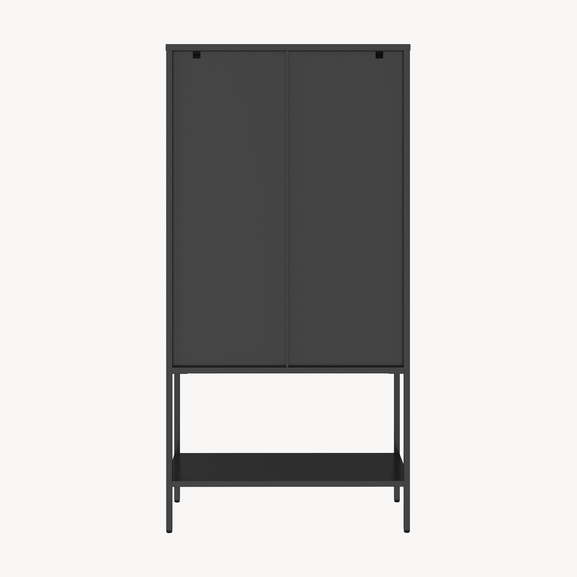 Le due ante in vetro si aprono comodamente grazie alle maniglie discrete e permettono di vedere chiaramente il contenuto in ogni momento. Una chiusura magnetica assicura che le ante si chiudano dolcemente e silenziosamente.