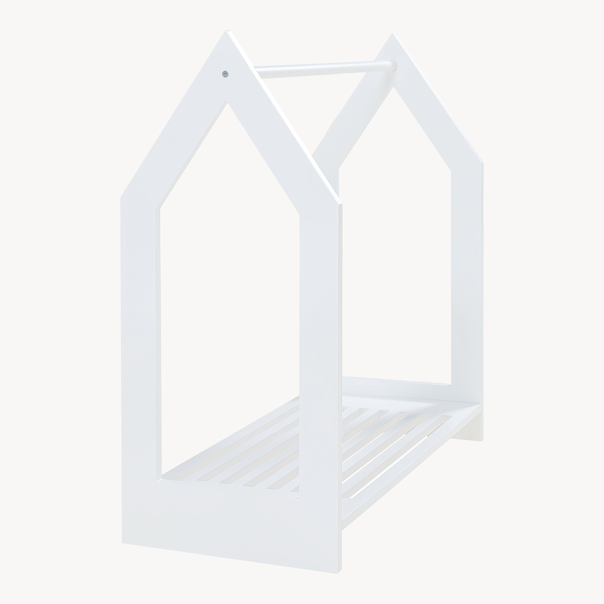 L'appendiabiti è versatile e si abbina sia ad arredamenti moderni che classici per camerette. La struttura a forma di casa garantisce non solo una base stabile, ma anche un aspetto amichevole.