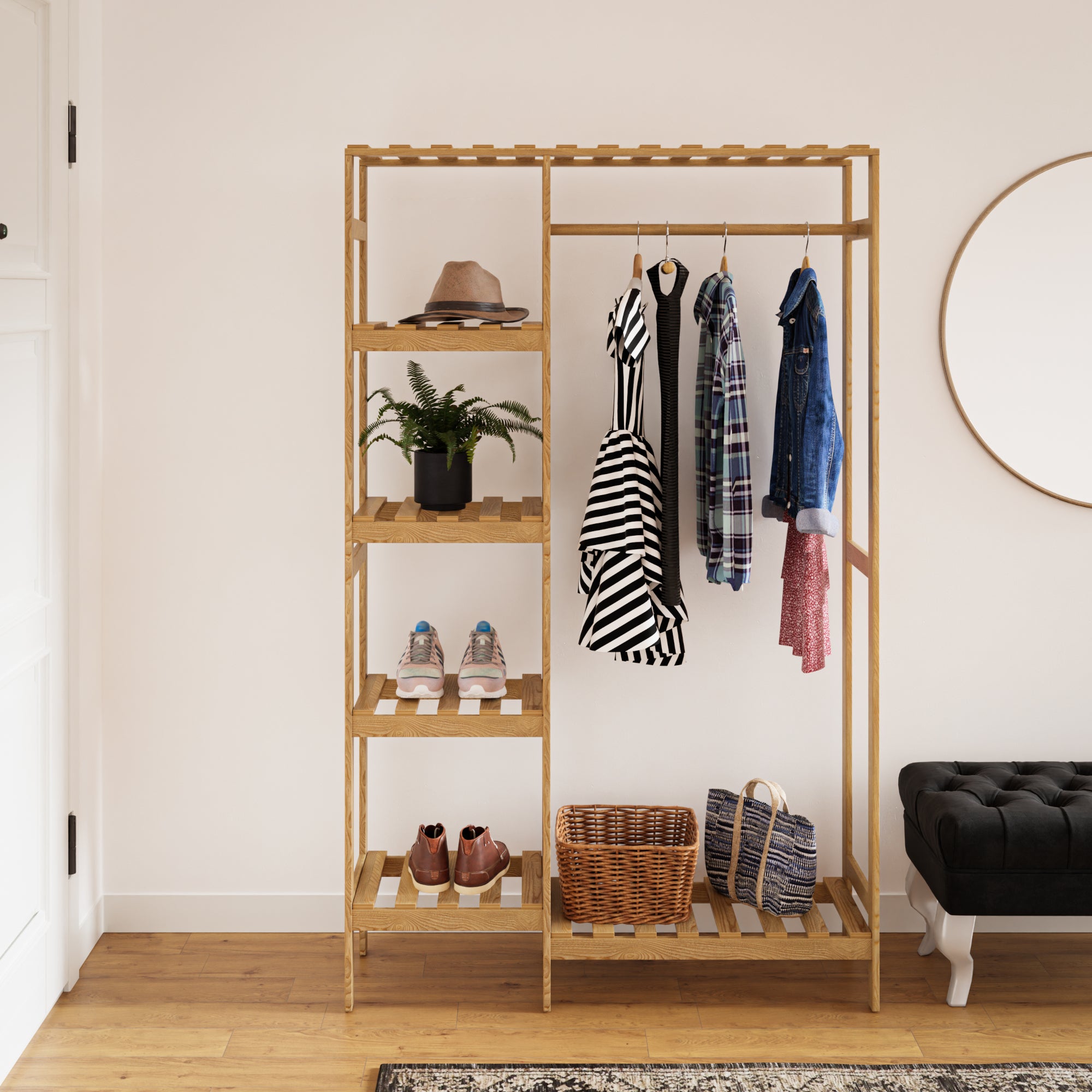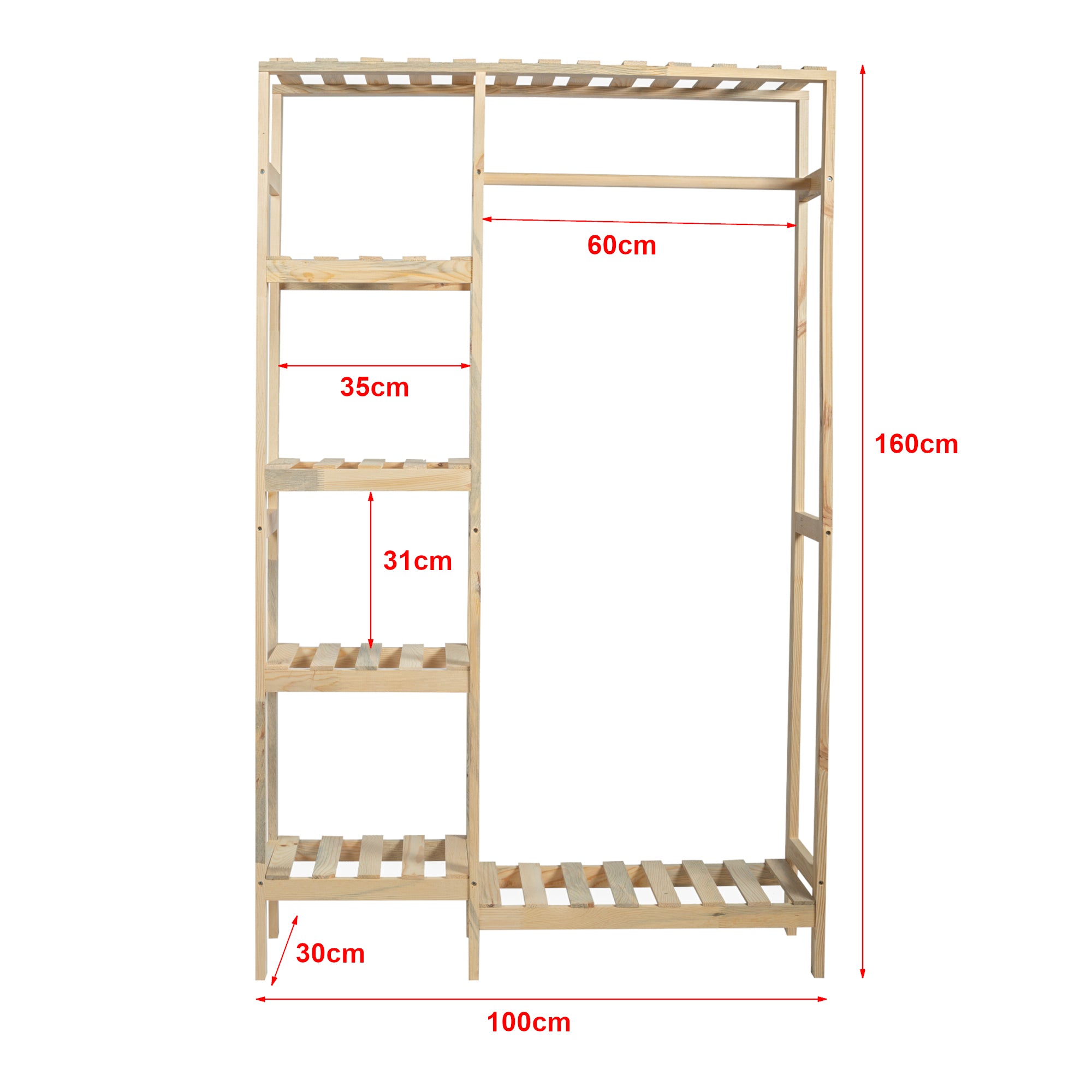 - dispone di 1 barra appendiabiti e in totale 6 piani di appoggio