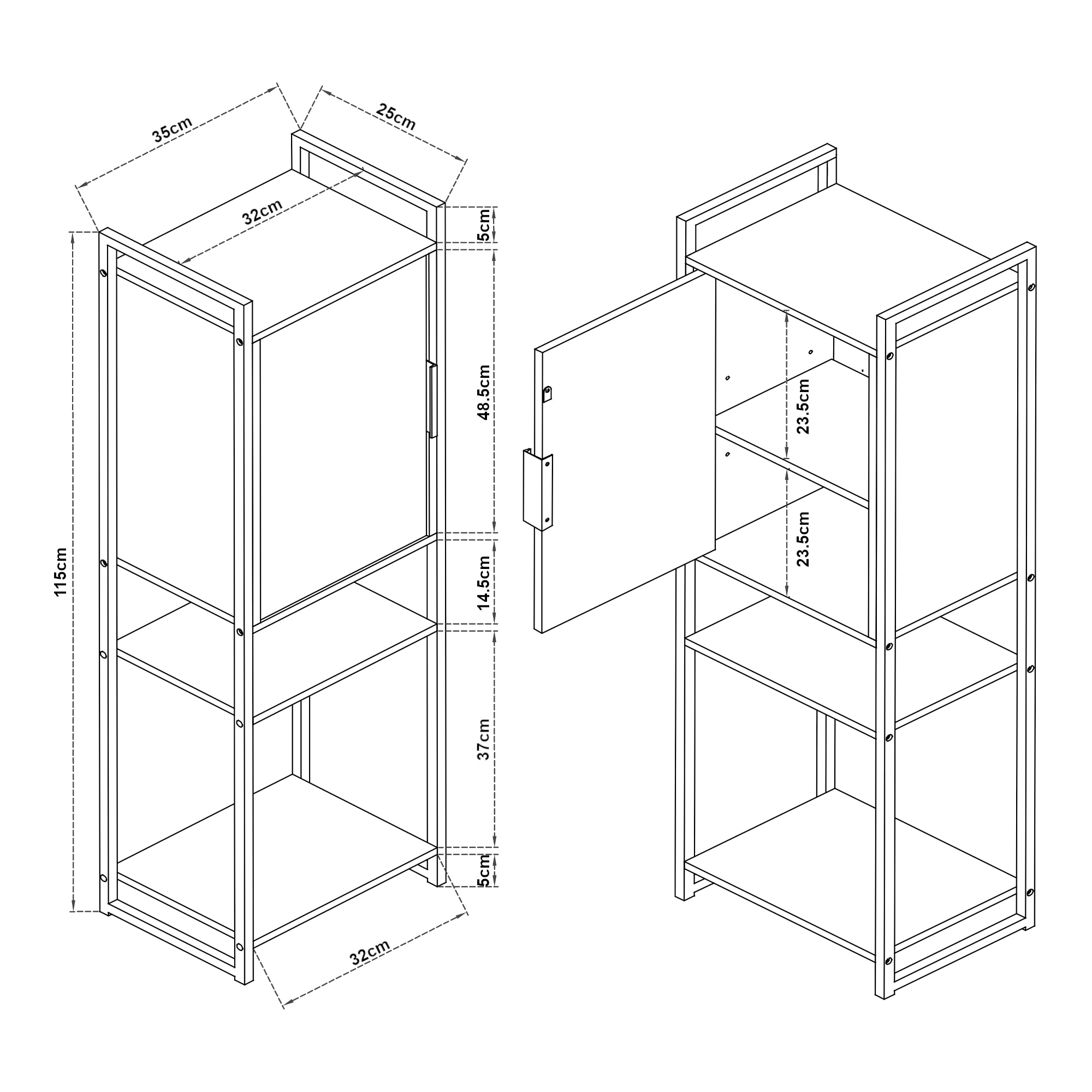 Dotato di scomparti chiusi con anta e superfici aperte, quest'armadio offre un'ampia versatilità nell'organizzazione e nell'accesso ai tuoi oggetti personali. Gli scomparti chiusi sono ideali per riporre asciugamani, prodotti per la cura personale e altri articoli che richiedono protezione dagli agenti esterni, mentre i scomparti aperti sono perfetti per esporre decorazioni, piante o accessori che desideri tenere a portata di mano.