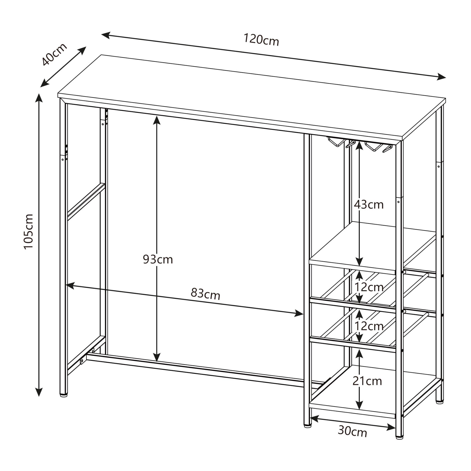 - Tavolo da bar con due classici ripiani e due ripiani per bottiglie