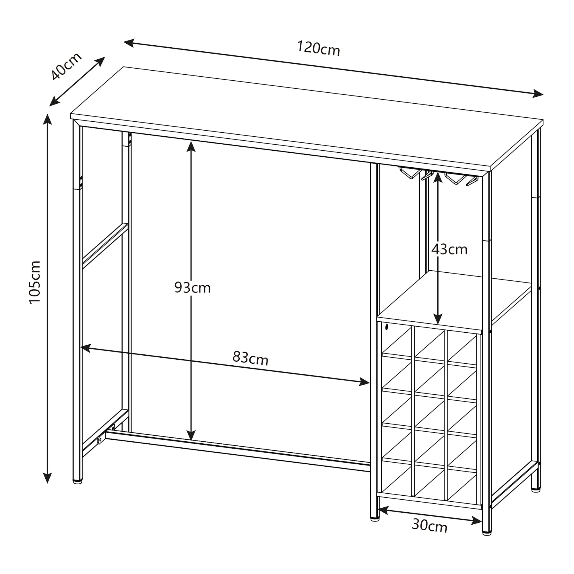 - Tavolo da bar con cantinetta integrata per fino a 15 bottiglie