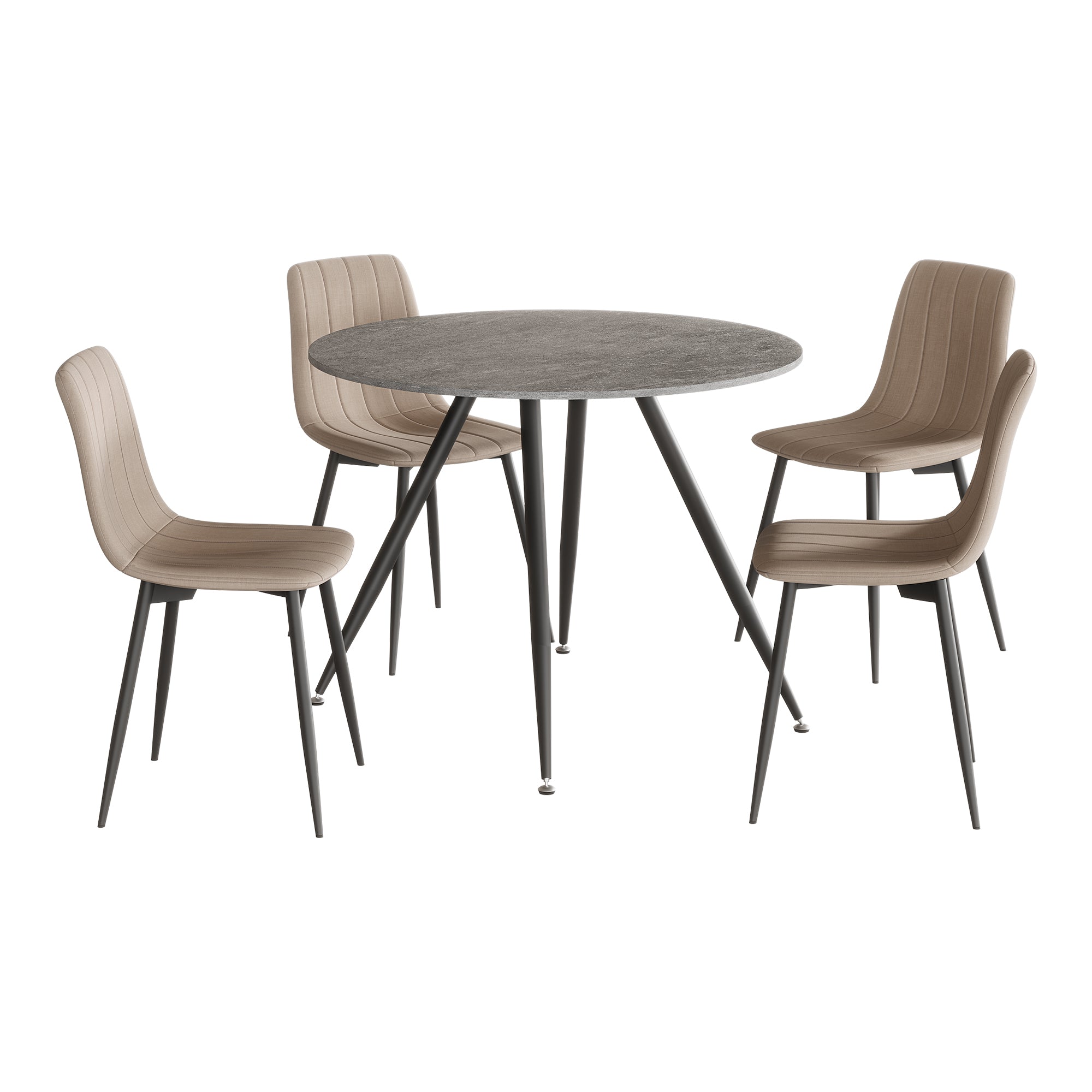 Le quattro comode sedie con schienale creano un ambiente accogliente e confortevole. Si abbinano perfettamente al tavolo e sono dotate ciascuna di quattro gambe robuste e di una seduta imbottita.
