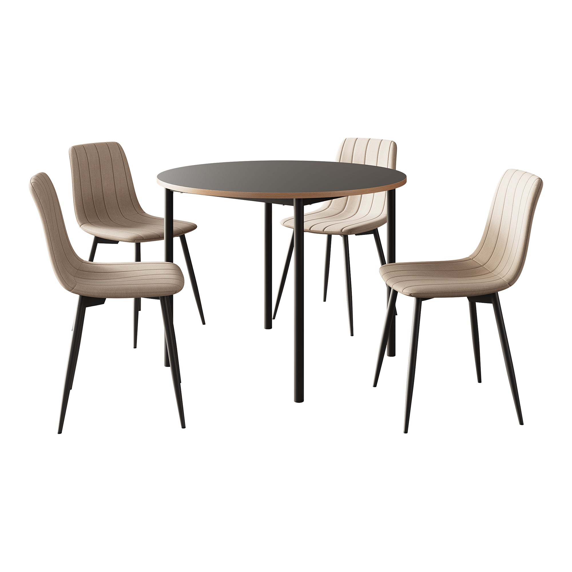 Le quattro comode sedie con schienale creano un ambiente accogliente e confortevole. Si abbinano perfettamente al tavolo e sono dotate ciascuna di quattro gambe robuste e di una seduta imbottita.