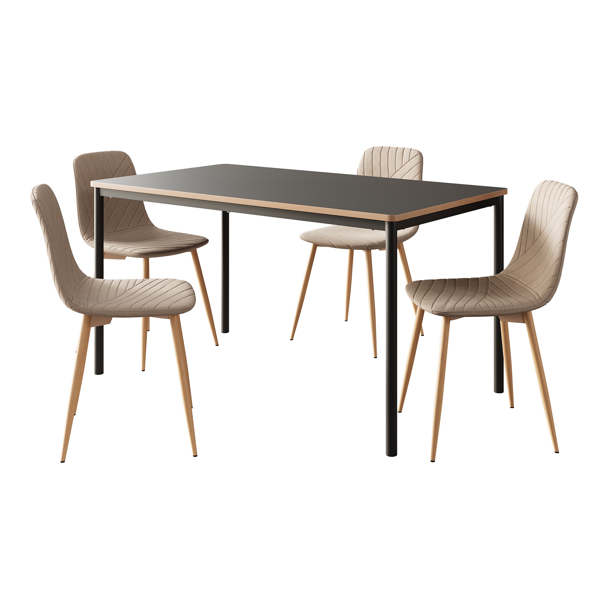 Questo elegante gruppo da pranzo è composto da un tavolo da pranzo e quattro sedie perfettamente coordinate. Con il suo design senza tempo, porta stile e comfort in ogni sala da pranzo.