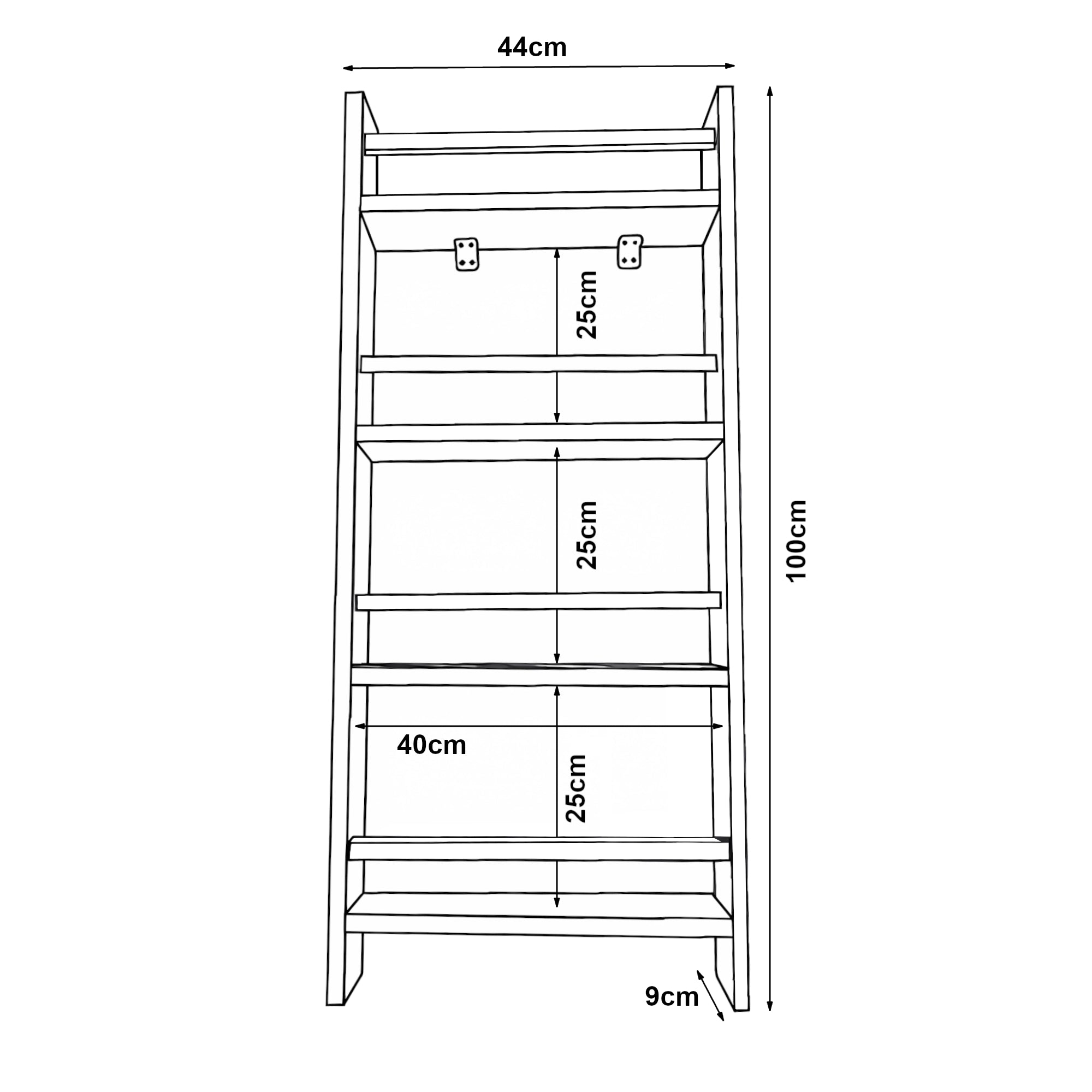 - Distanza tra ripiani: 25 cm