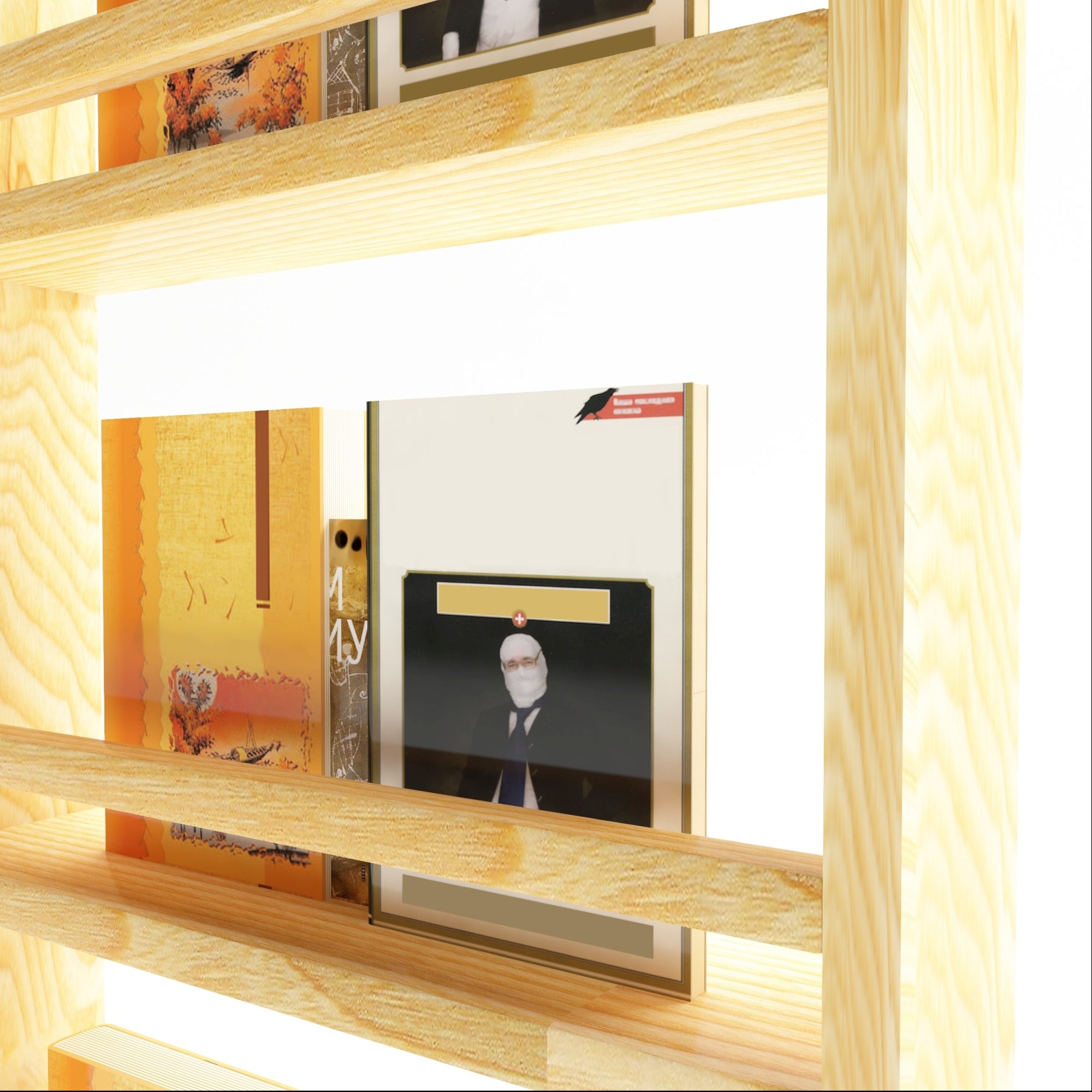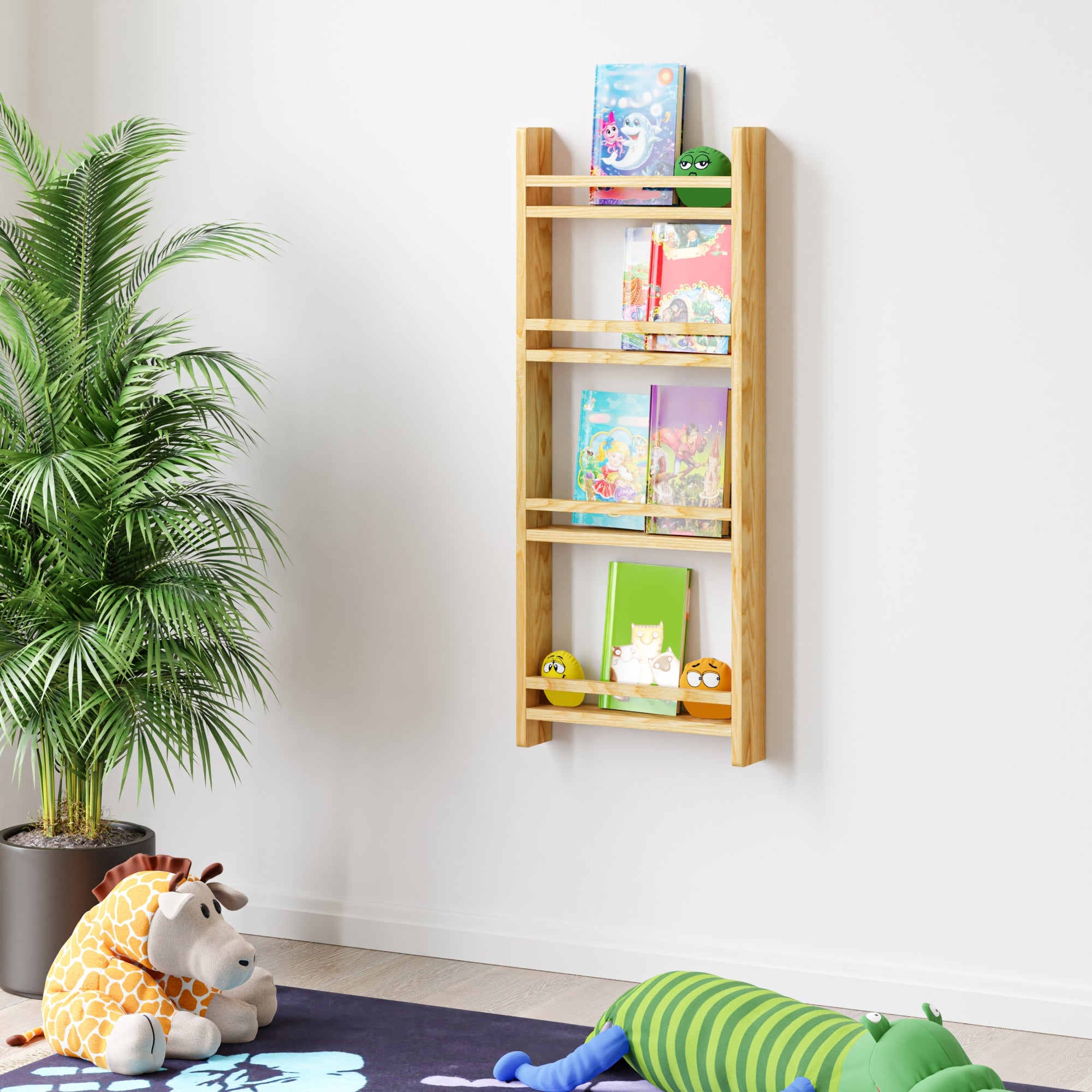 Con quattro ripiani, lo scaffale offre spazio per esporre libri, quaderni o qualsiasi altra collezione che desideri mettere in mostra. I ripiani sono dotati di barre anticaduta, che non solo aggiungono un elemento di sicurezza, ma contribuiscono anche al design complessivo, creando un equilibrio visivo. Con la sua profondità di appena 9 cm, lo scaffale si presenta come un'opzione di organizzazione verticale versatile e efficiente. Questa caratteristica lo rende ideale per sfruttare in modo ottimale lo spazio in una varietà di ambienti ed esporre libri o cataloghi creando un punto focale che riflette il gusto personale e contribuisce all'atmosfera accogliente della stanza.