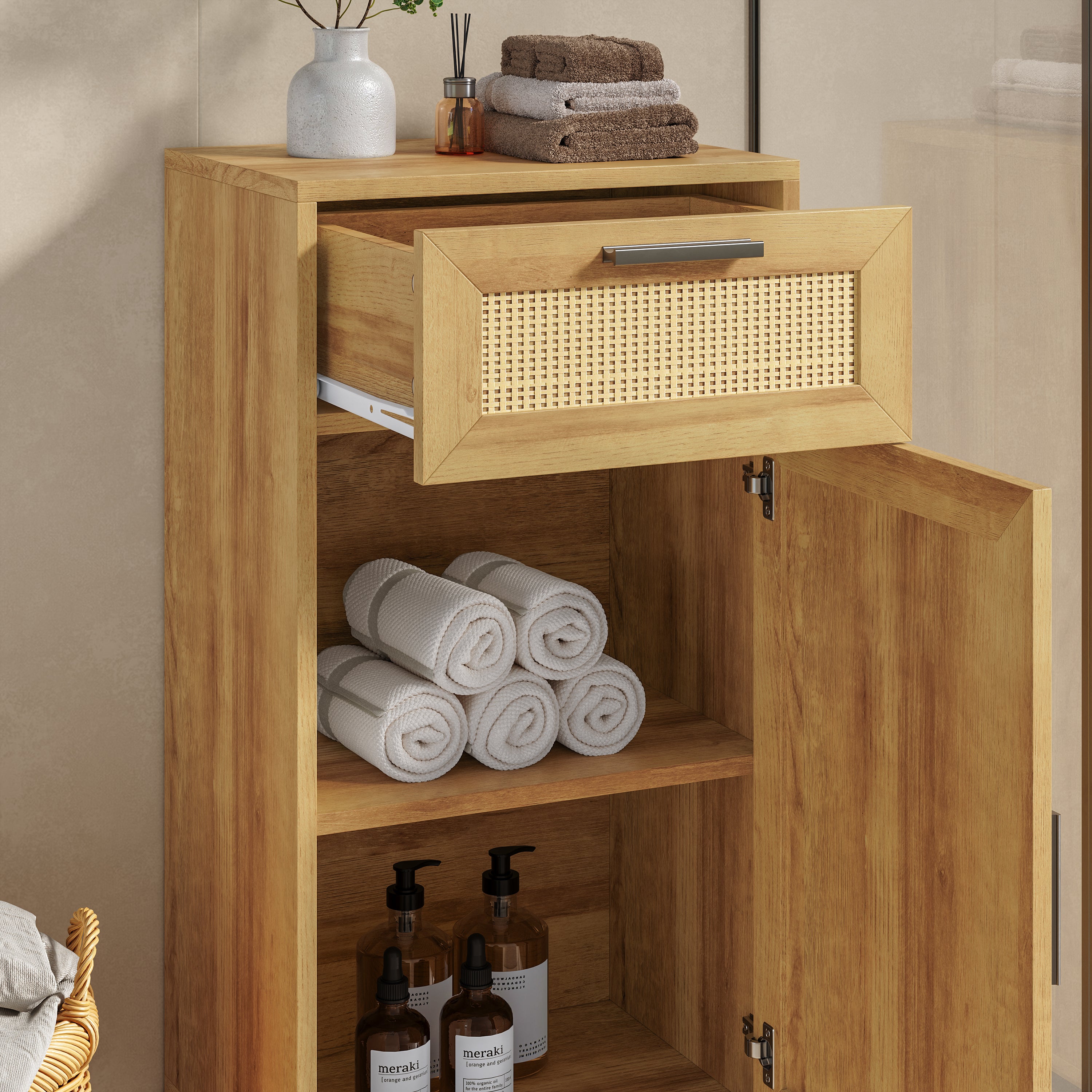 La disposizione interna è studiata per una gestione intelligente dello spazio: il cassetto è ideale per piccoli oggetti come cosmetici o prodotti per la cura personale, mantenendoli ordinati e sempre a portata di mano. L’anta con maniglia ergonomica consente un accesso rapido al vano interno, mentre il ripiano permette di organizzare al meglio carta igienica, asciugamani, asciugacapelli o altri accessori.