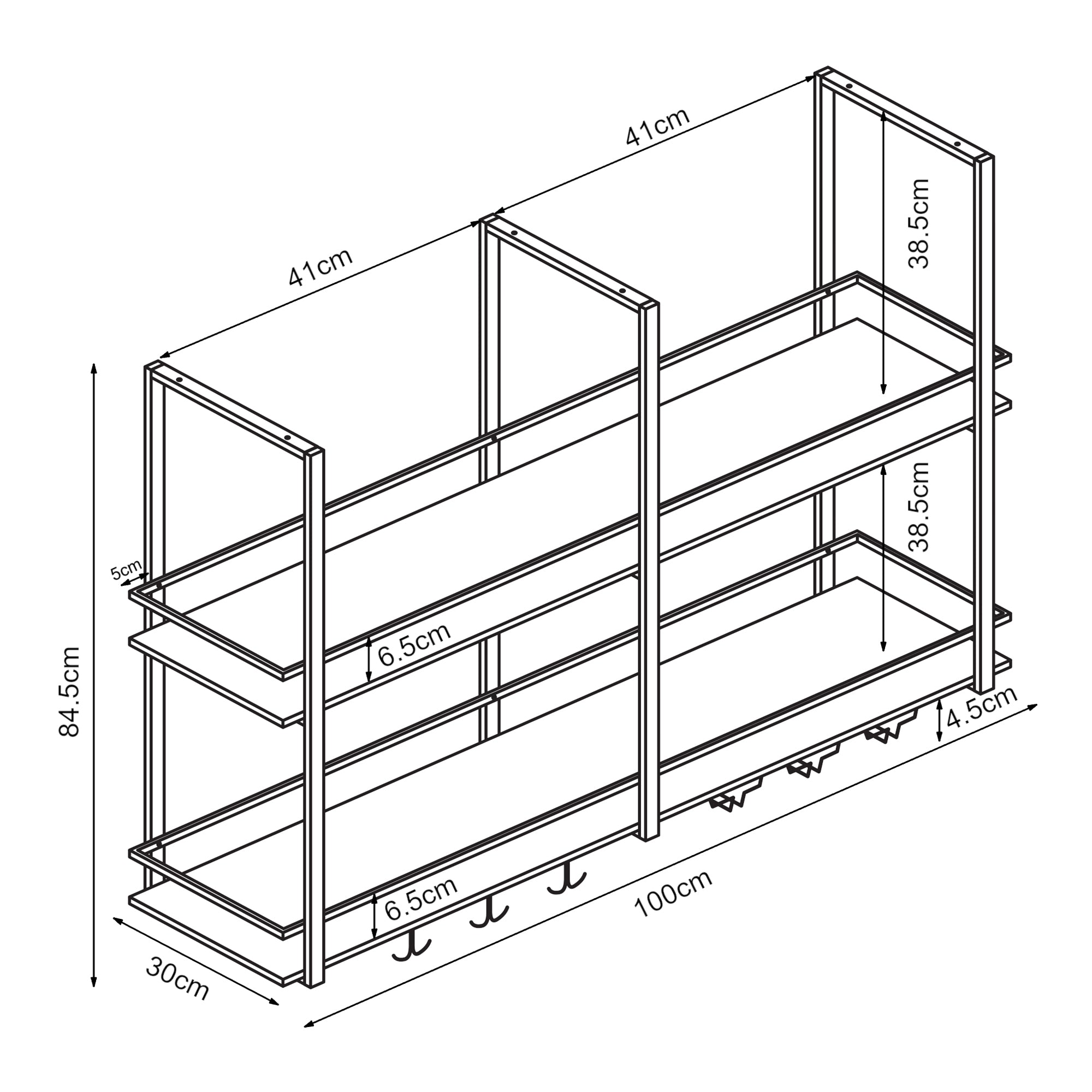 Le due mensole dispongono ciascuna di due scomparti aperti, dove è possibile conservare bottiglie di vino a portata di mano e con stile. Anche liquori e altre bevande possono essere esposti in modo accattivante.