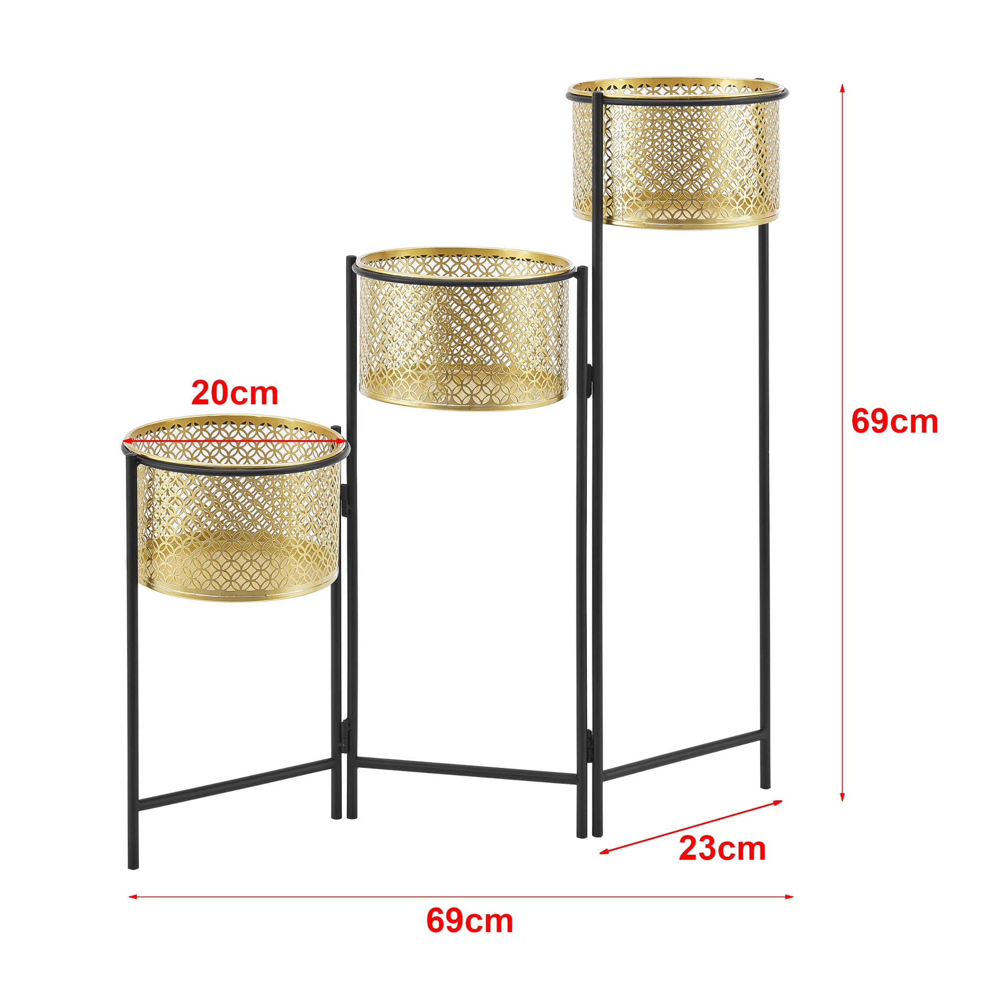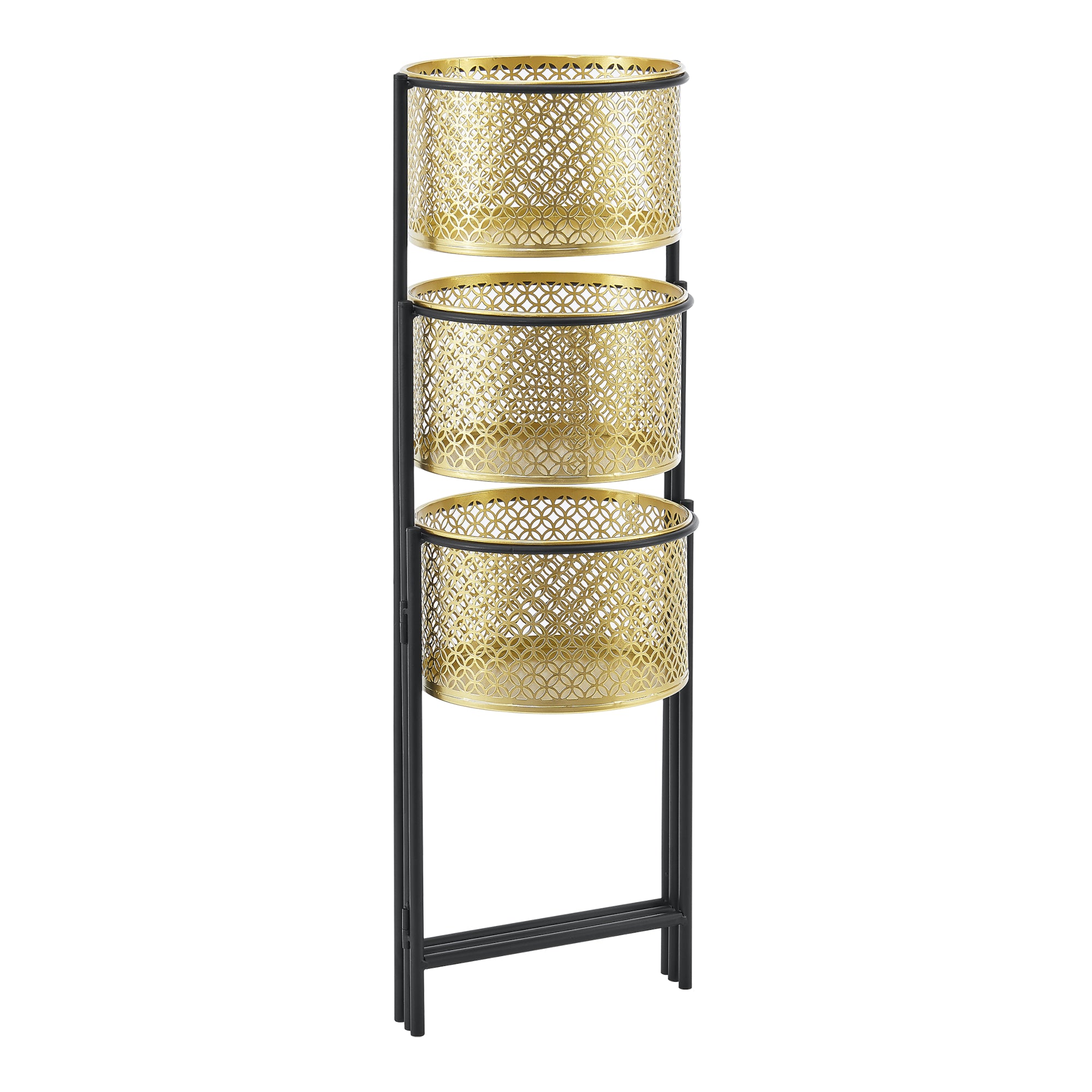 Questo originale porta piante con 3 vasi in metallo è pieghevole e quindi molto salvaspazio. Grazie al suo design senza tempo e decorativo, è un vero e proprio punto focale nel vostro ambiente domestico.