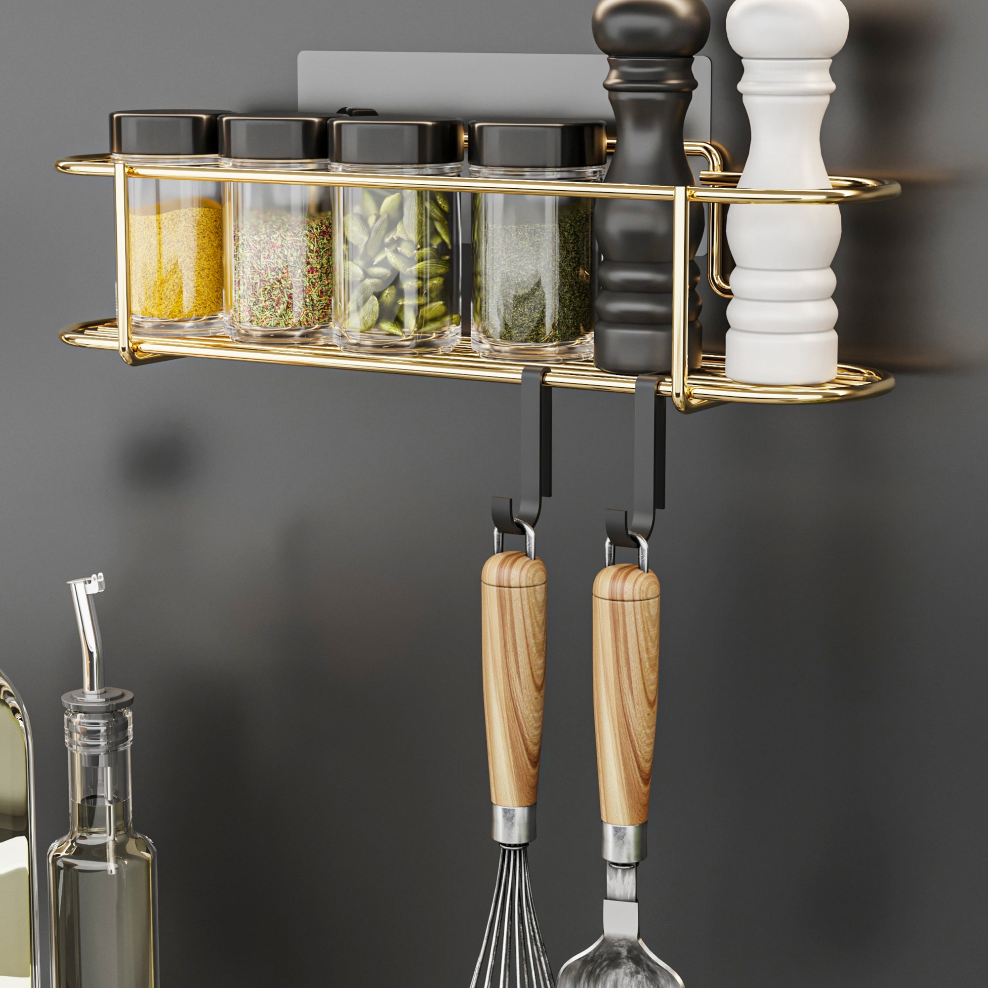 Questa mensola portaspezie è molto più di un semplice accessorio in cucina; è un'espressione di stile e funzionalità che trasforma l'ordinario in straordinario. Realizzata in metallo color oro, conferisce un'eccellente resistenza e durata nel tempo, senza compromettere lo stile. La sua forma ovale è un dettaglio che la rende unica, mentre la barra anticaduta alta 7 cm garantisce che gli oggetti rimangano saldamente in posizione, senza rischio di caduta.