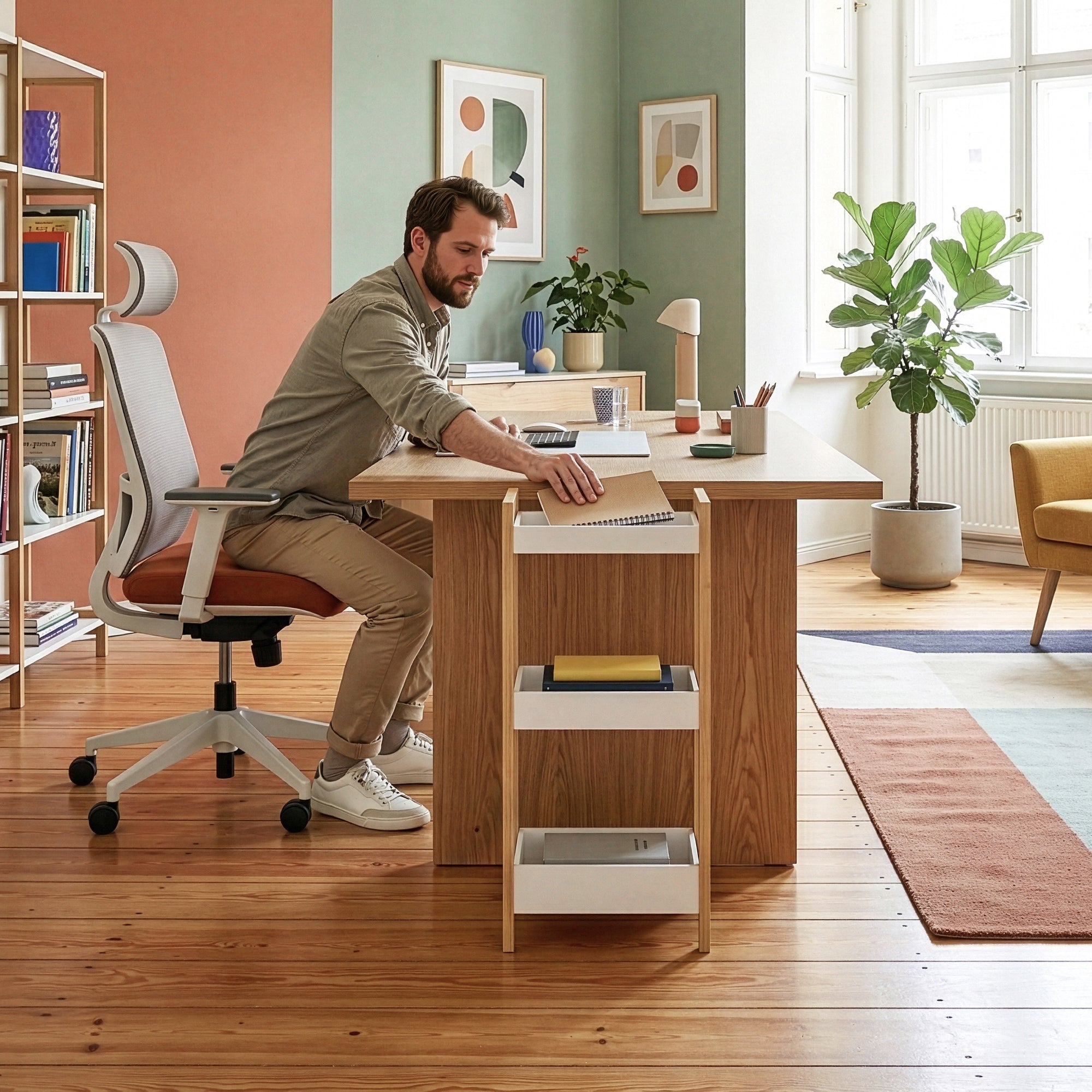 I tre cestini dotati di bordi rialzati sono progettati per contenere in sicurezza bottiglie, contenitori e altri oggetti, evitando che cadano accidentalmente. Il design aperto favorisce un accesso rapido e agevole agli oggetti di uso quotidiano, rendendo l’organizzazione semplice e funzionale.