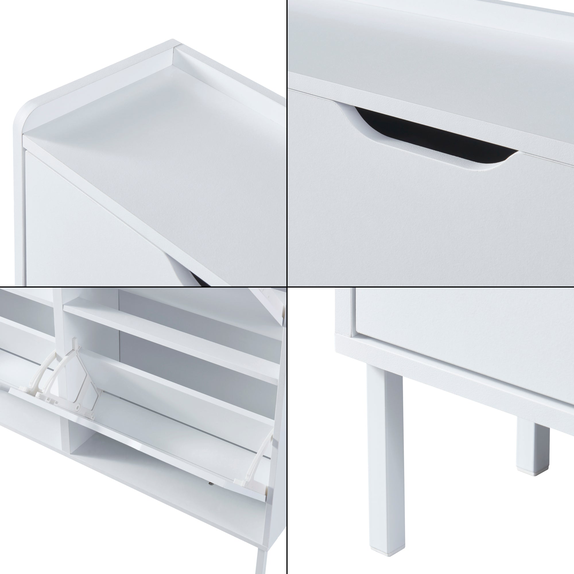 Con l’armadietto per scarpe tenete la vostra collezione di scarpe ordinata e a portata di mano. I quattro sportelli si aprono separatamente, permettendovi di organizzare ordinatamente sneaker, scarpe sportive, sandali e tutte le altre calzature.
