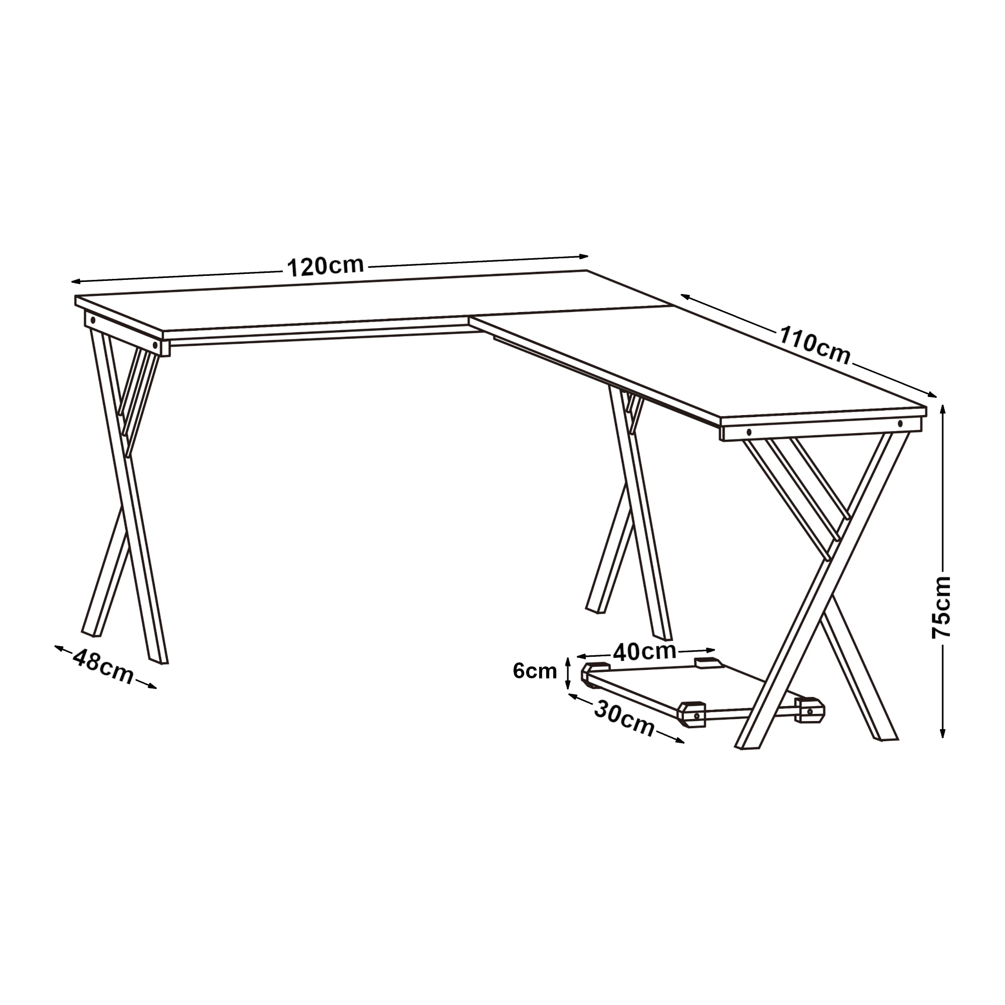 Lo scrittoio a forma di L dispone inoltre di un pratico supporto per PC desktop. La superficie di appoggio è ideale per posizionare un case tower e protegge il computer grazie alla leggera elevazione dal contatto diretto con il pavimento e dall’umidità.