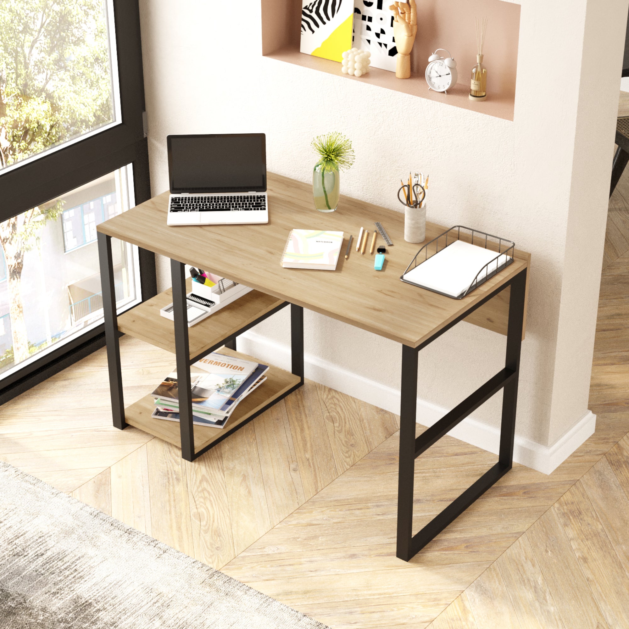 Un'altra caratteristica particolare è la struttura con una mensola laterale integrata. I due scomparti della mensola offrono ampio spazio per libri, documenti, materiale d’ufficio e oggetti decorativi. Il design aperto permette un facile accesso e una buona visibilità, rendendo il tavolo un posto di lavoro ideale.