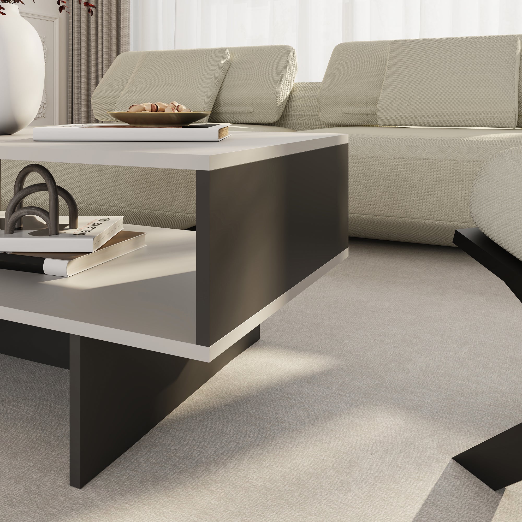 Questo tavolo offre un'atmosfera straordinaria nel vostro soggiorno. Il ripiano inferiore offre uno spazio di stoccaggio aggiuntivo.