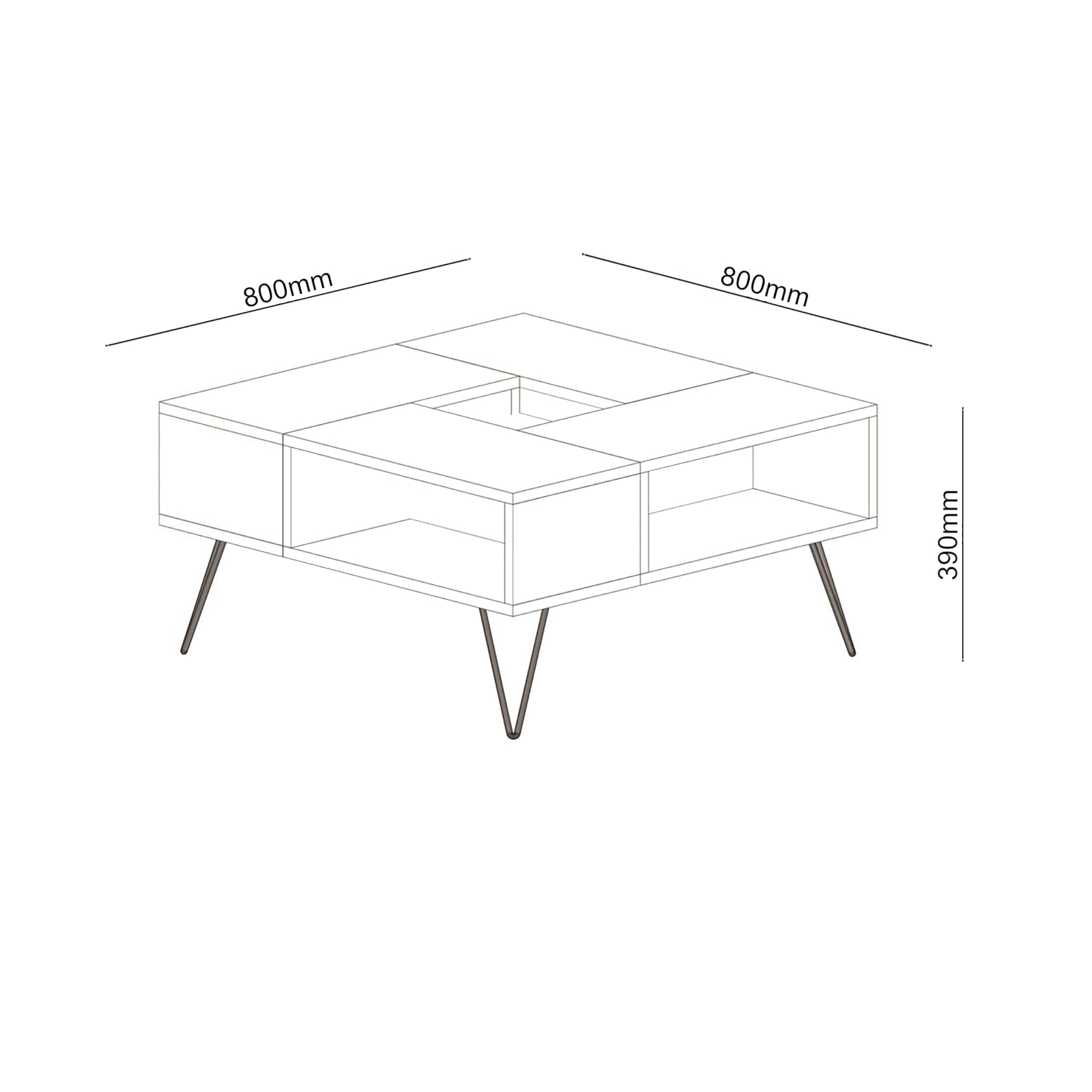 Questo tavolo offre un'atmosfera straordinaria nel vostro soggiorno. I ripiani inferiori offrono uno spazio di stoccaggio aggiuntivo.